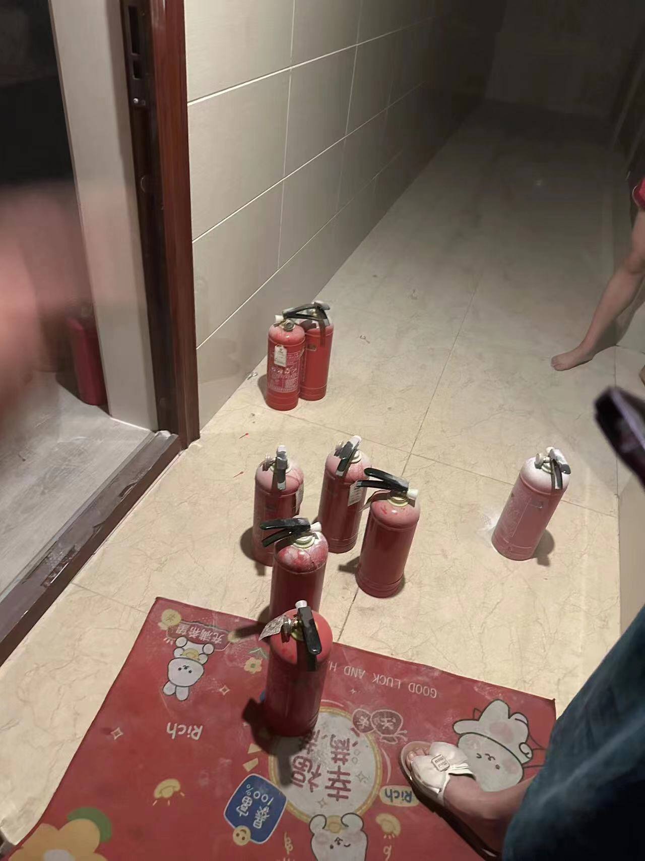 看着火势越来越大,家里的2个老人、2个年轻女性和1个孩子已经被吓得六神无主,慌乱中报警还说错了小区地址。“你们快出去,我来!快!”江林二话不说,跑到楼层消防栓处取来灭火器,迅速奔向火点,并叫大家赶紧去将其他楼层灭火器都取来、通知物业前来协助。
