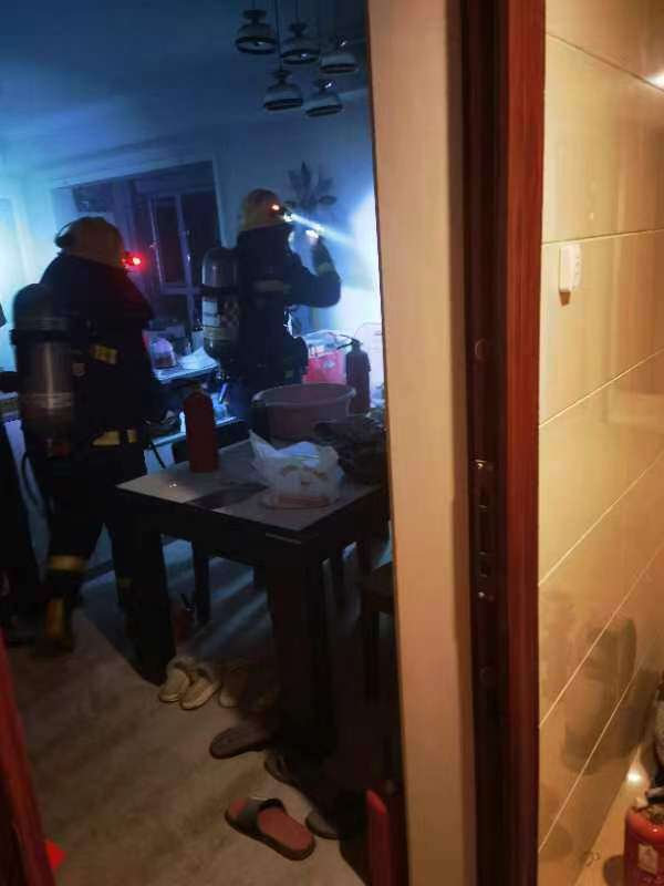 厨房火光闪烁、温度极高,江林心里也有点打鼓。“一直在燃,又黑黢黢的,看不见里面,担心发生爆炸。”江林告诉记者,站在门口体感温度特别高,就尽可能把手伸长一点去喷灭火器。“威力很大,很有效。”此时,小区3名物业人员也赶来了,大家提上灭火器一起冲进厨房。10分钟后,火情成功控制,最终在赶来的消防队员努力下,彻底将火灾扑灭了!