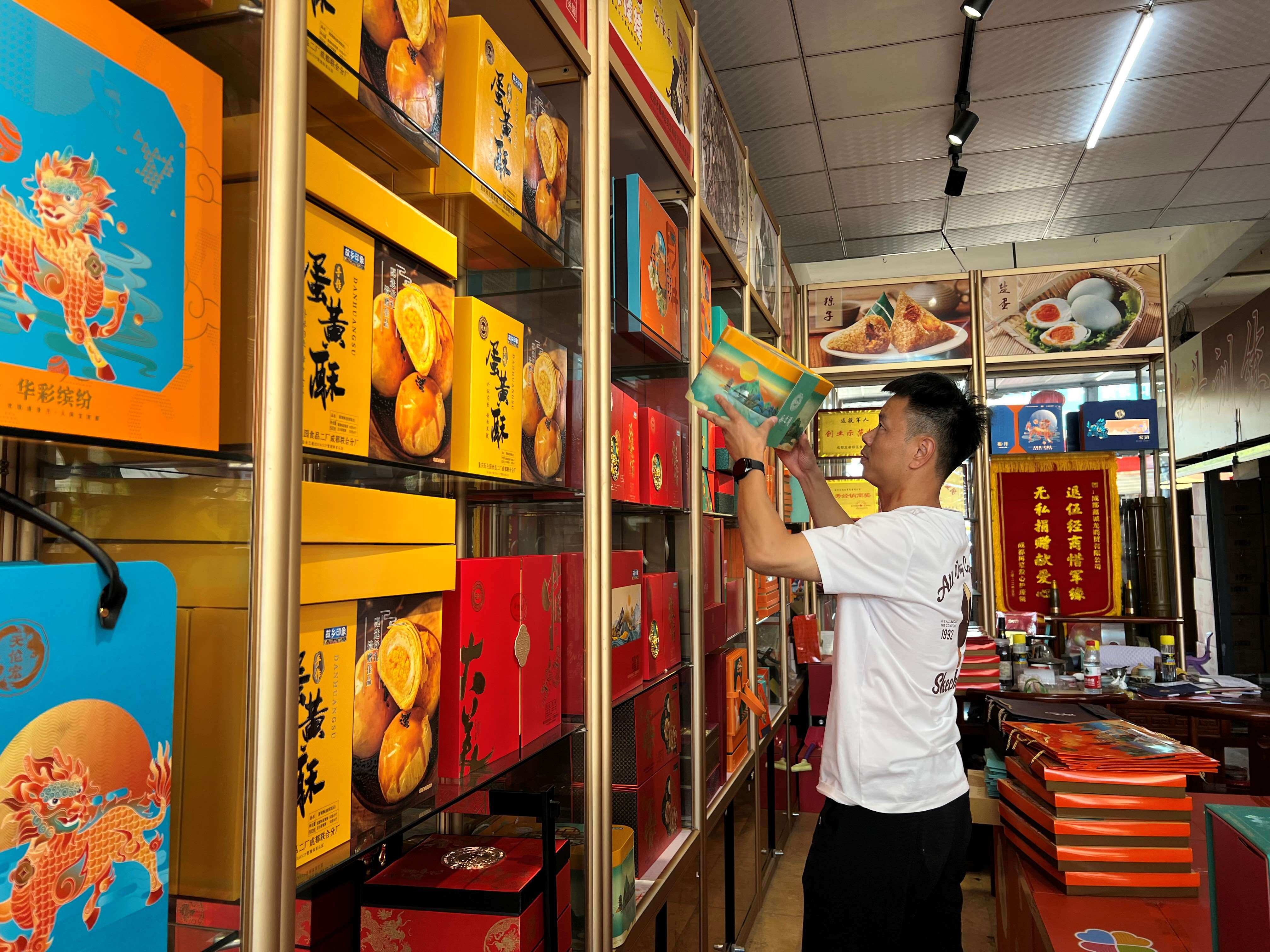 市民方朝奎拎着几箱月饼放进了车辆后备厢,他说:“今天专门到这里买月饼,感觉品种比较丰富,花样也比去年更多了。价格方面还比较亲民,老百姓都消费得起。”