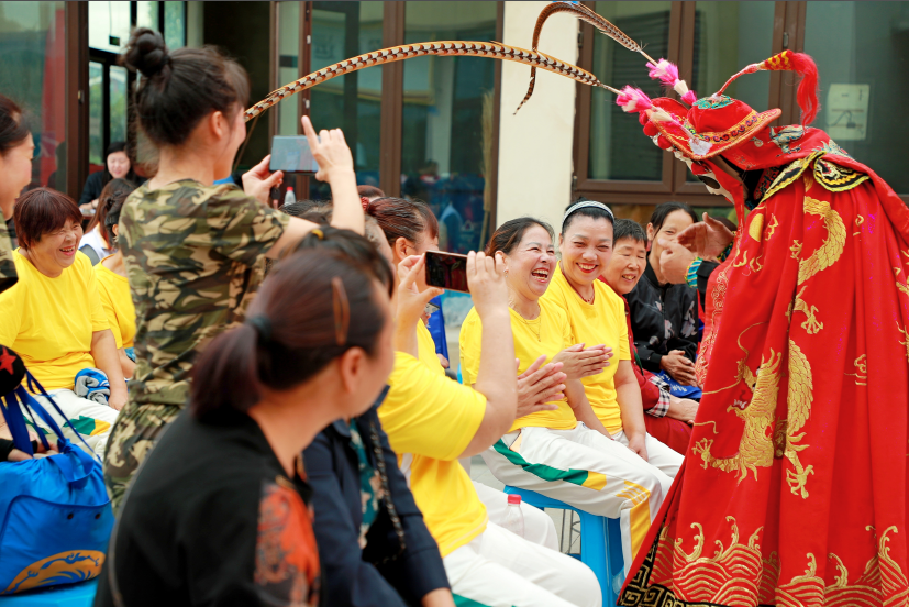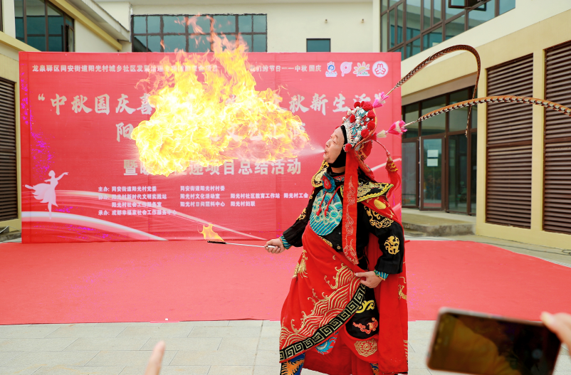 来自四川民间艺术大师的非遗变脸节目,则将活动推向高潮,近距离观看变脸和喷火节目,大家连连叫好!关于中秋国庆的有奖问答,则充分调动村民的互动氛围。本次文艺主题,大家一起用祝福美好未来的歌声,表达了对祖国、对家乡的浓浓深情。节目精彩纷呈,既有古韵典雅的曲艺,又有青春激扬的歌舞,吸引了每位观众的目光,居民叫好声不断,掌声一片!