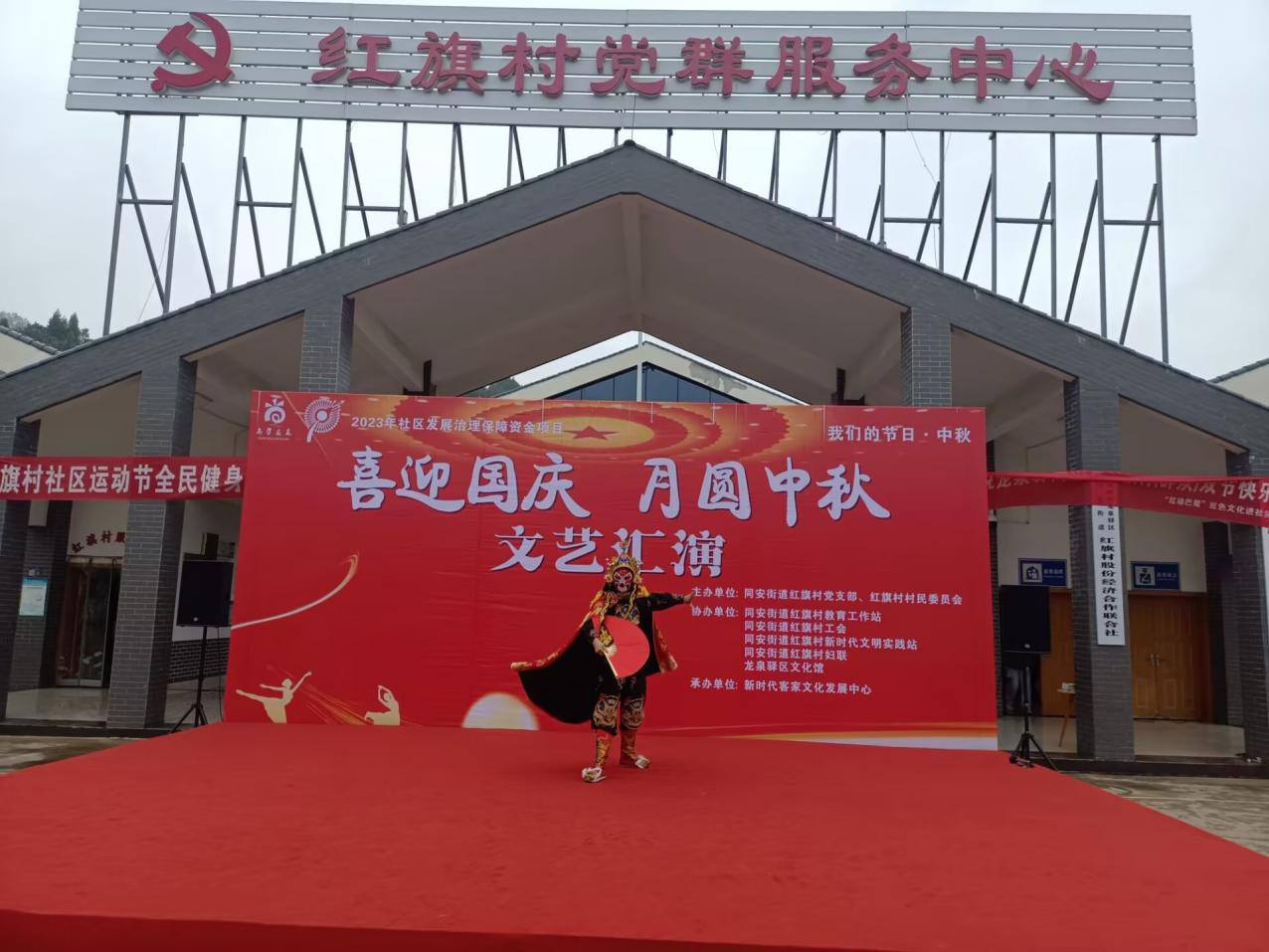 中秋佳节,丹桂飘香。为弘扬中华民族传统文化,培育和践行社会主义核心价值观,宣扬孝老爱亲的文化传统,龙泉驿区同安街道红旗村携手成都市成华区新时代客家文化发展中心于9月26日下午14:00在红旗村开展了“喜迎国庆·月圆中秋”文艺汇演活动,活动现场人头攒动,辖区居民约100人参加了此次活动。