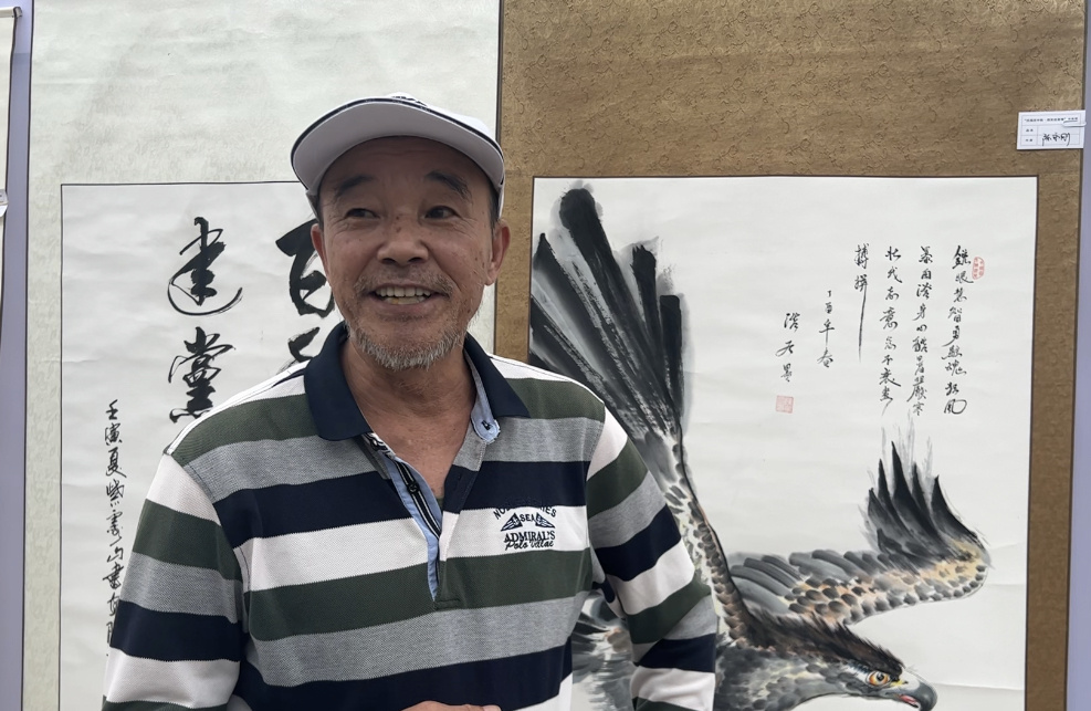 一幅幅精美的作品引人赞叹,不时有参观者拿出手机拍照留存。紫霞山书画院学员陈永刚在书画院老师的引导下,钻研画鹰多年,从初学基本手法到后来现场写生,他不仅将各种形态的鹰画得活灵活现,人也更加自信了。他高兴地告诉记者,书画展给了书画爱好者交流展示的机会,也让我们感受到了祖国越来越强大,人民生活越来越幸福。