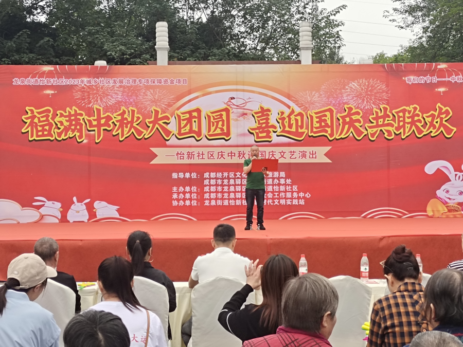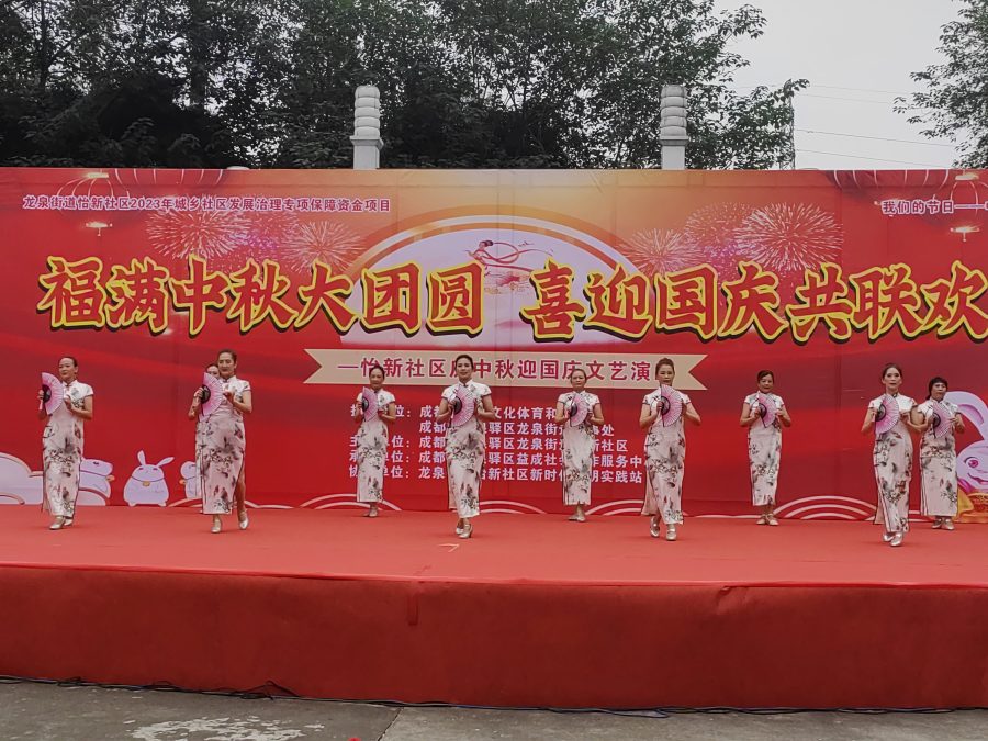 为热烈庆祝中华人民共和国成立74周年,热情讴歌新中国成立以来取得的伟大成就,以丰富多彩的文艺活动表达怡新社区居民积极向上的精神风貌和对祖国母亲的热爱之情,9月27日下午,“福满中秋大团圆 喜迎国庆共联欢”庆中秋迎国庆文艺活动在怡新广场举行,通过精彩纷呈的表演为社区营造出喜庆、热闹的节日氛围,辖区党员、居民、文体队伍成员400余人次参与其中。