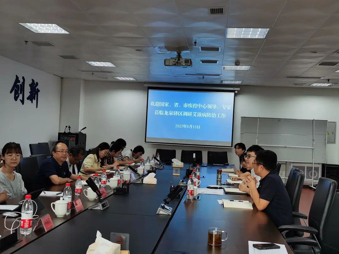 为进一步提高艾滋病检测效率,推动高质量开展艾滋病检测工作,2023年8月15日下午,国家疾控中心艾防中心副主任吕繁、国家疾控中心艾防中心干预室副主任徐杰、研究实习员王韶嵘、专家王调等4人到成都市龙泉驿区疾控中心就艾滋病检测工作开展调研,深入了解了龙泉驿区艾滋病检测工作中的措施和做法,四川省疾控中心艾防所副所长梁姝、专家曾亚莉和卓玛拉措,成都市疾控中心副主任王亮、性艾科科长何勤英、专家何世娇,龙泉驿区疾控中心主任师杨、副主任王军、艾防科科长李敏等一行陪同调研。