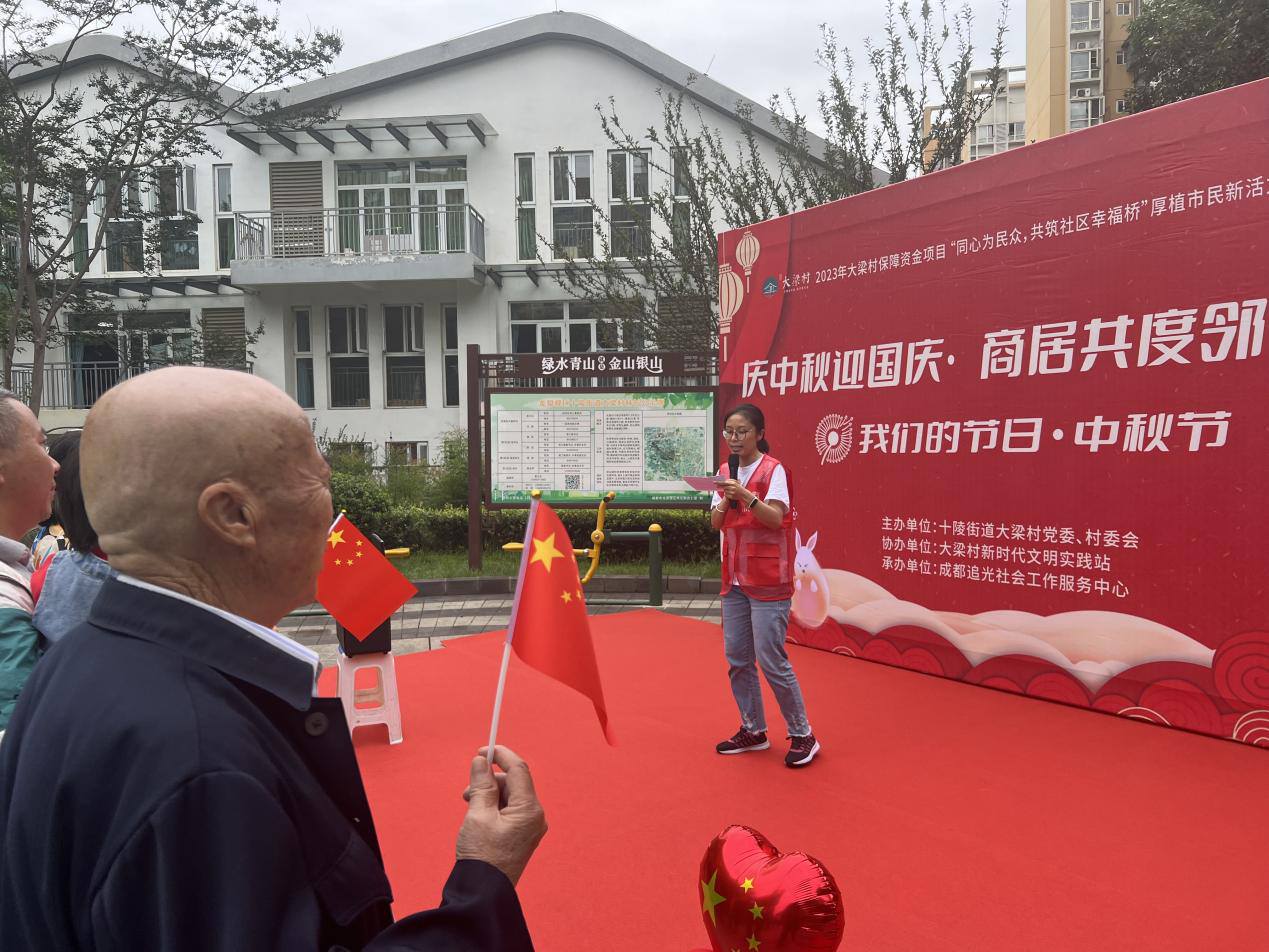 下午3点半,在十陵街道大梁村明蜀新村广场,村民们共同演绎了一首为祖国庆生的歌曲《今天是你的生日》,也正式为庆中秋迎国庆活动拉开了帷幕。