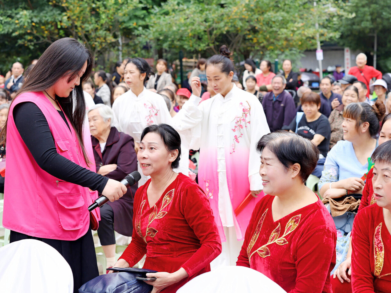 社区自组织们发觉自身优势,提升自我能力,为本次汇演献上有声有色种类多样的表演,涵盖太极、舞蹈、腰鼓、走秀等。张弛有道的《太极功夫扇》表演将汇演氛围推至高潮,精湛的表演引来阵阵喝彩。趣味互动现场作答,拉近居民距离,增近邻里交流。情景剧《我爱我的爸爸妈妈》展现社区网格及志愿者如何走进弱势群体生活,倾听群众心声,切实解决问题,共建平等和谐社区环境。在这欢乐祥和的氛围中居民们用自己的方式表达着对祖国的深深祝福和对社区的美好愿景。伴随着《歌唱祖国》的优美旋律,活动在大家的依依不舍中圆满落幕。
