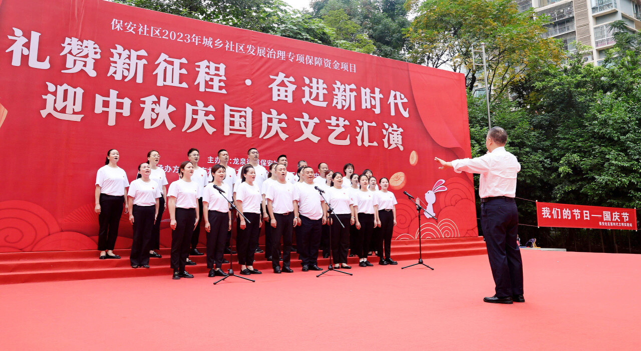 “我和我的祖国,一刻也不能分割……”随着音乐响起,保安社区全体工作人员与居民们共同唱响这永恒的旋律,表达对祖国的美好祝福,一场文艺盛宴也正式开始。