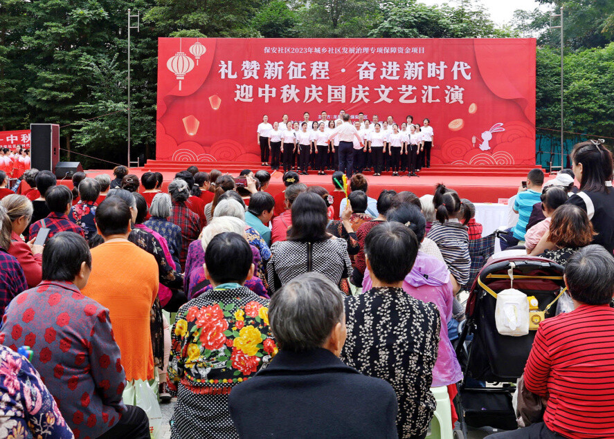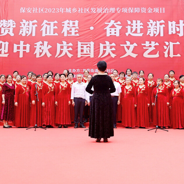 金秋十月,丹桂飘香,为迎接“中秋”“国庆”双节来临,营造“双节”喜庆氛围,大力弘扬中华优秀传统文化,丰富辖区居民文化生活,2023年9月27日,保安社区开展礼赞新征程·奋进新时代迎中秋庆国庆文艺汇演活动。