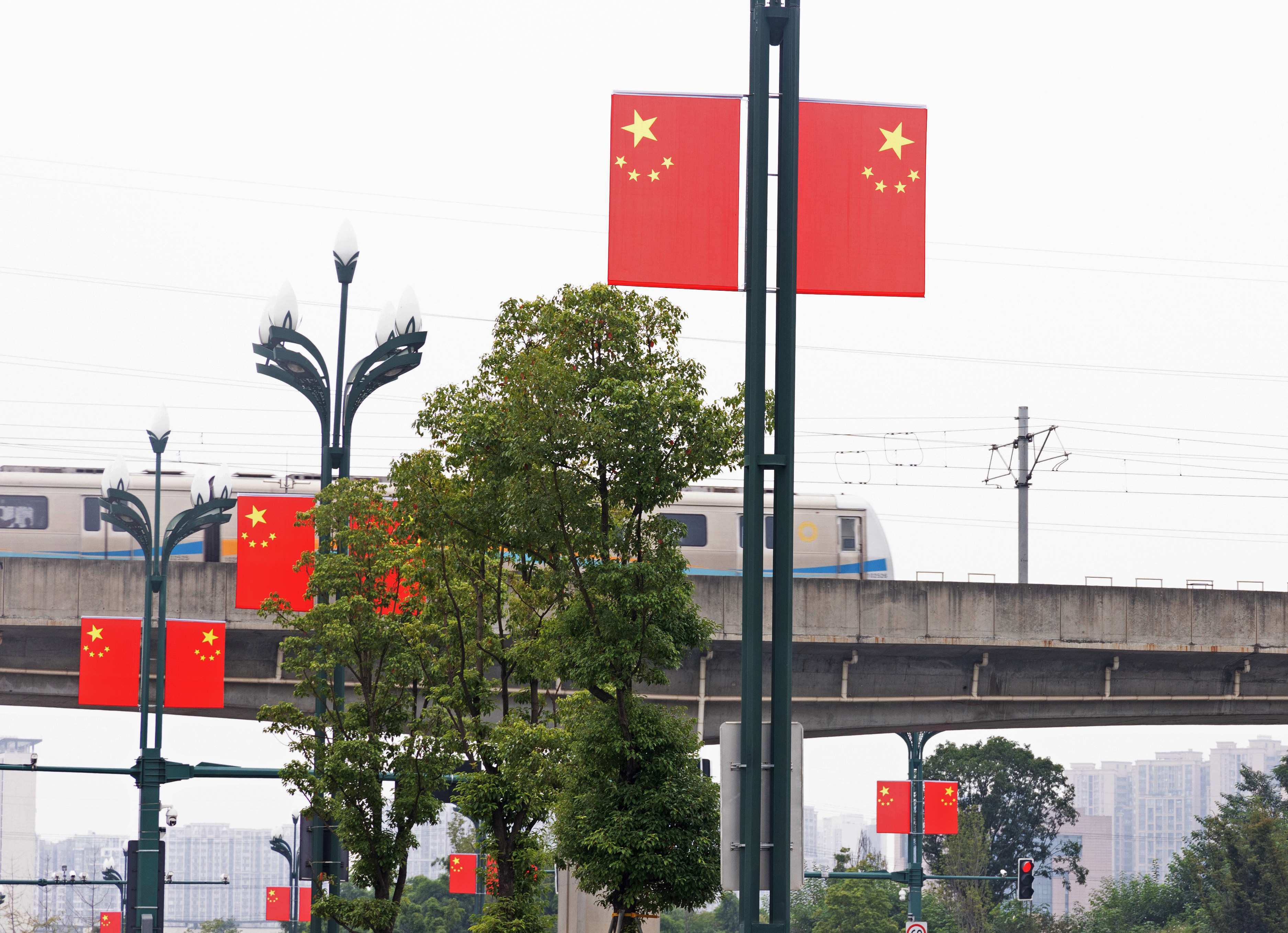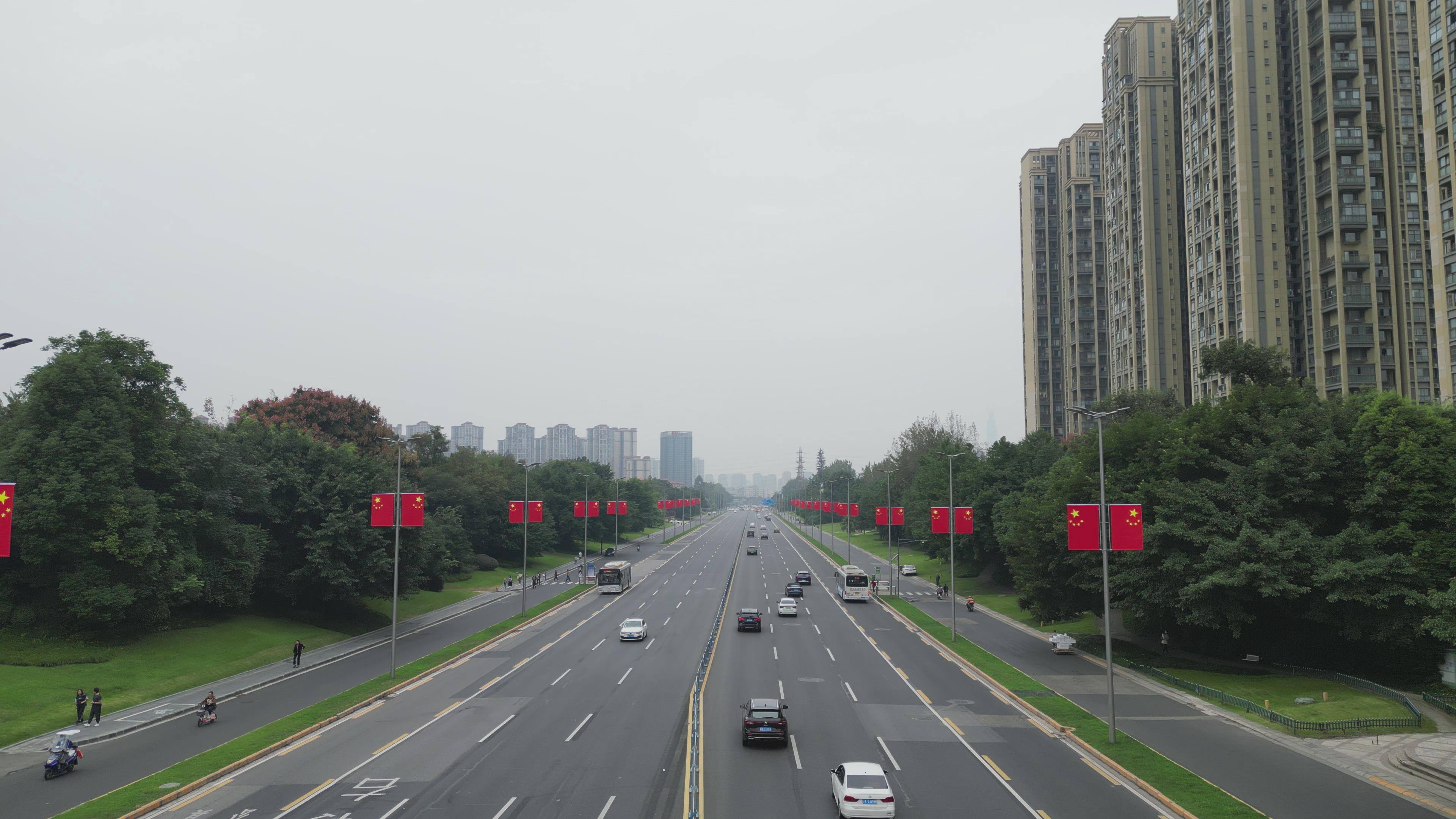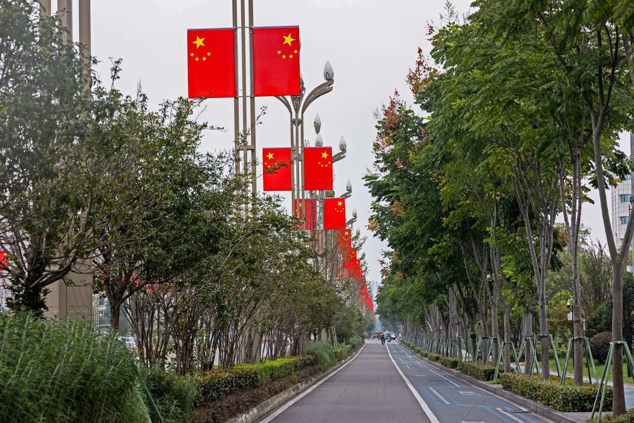据了解,龙泉驿区在城区各主要交通干道悬挂国旗共2560面,包括东安大道、驿都大道、蜀都大道、龙都南路、航天南路、成龙大道、桃都大道等。一股喜庆的红色浪潮让人倍感振奋,更引得过往市民纷纷拍照留念。