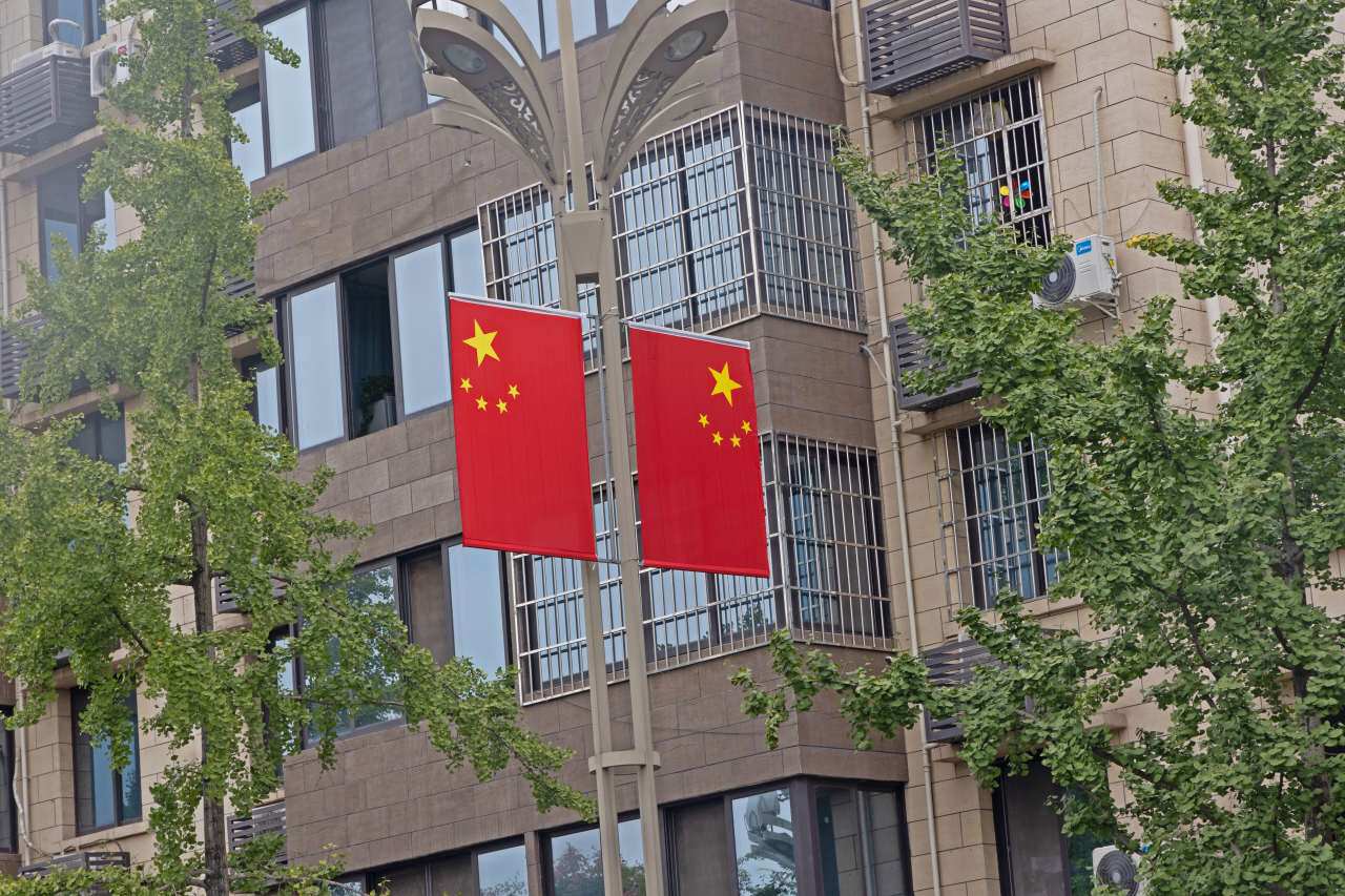 一面面五星红旗随风飘扬
