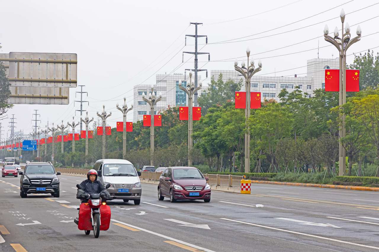 “中秋”“国庆”双节将至,为庆祝祖国华诞,营造一个和谐喜庆的节日氛围,龙泉驿区相关部门加班加点在城区各主要街道等路段的路灯杆上悬挂了五星红旗。城市主干道、大街小巷、居住小区、商户门前……被一抹抹中国红浸染着。