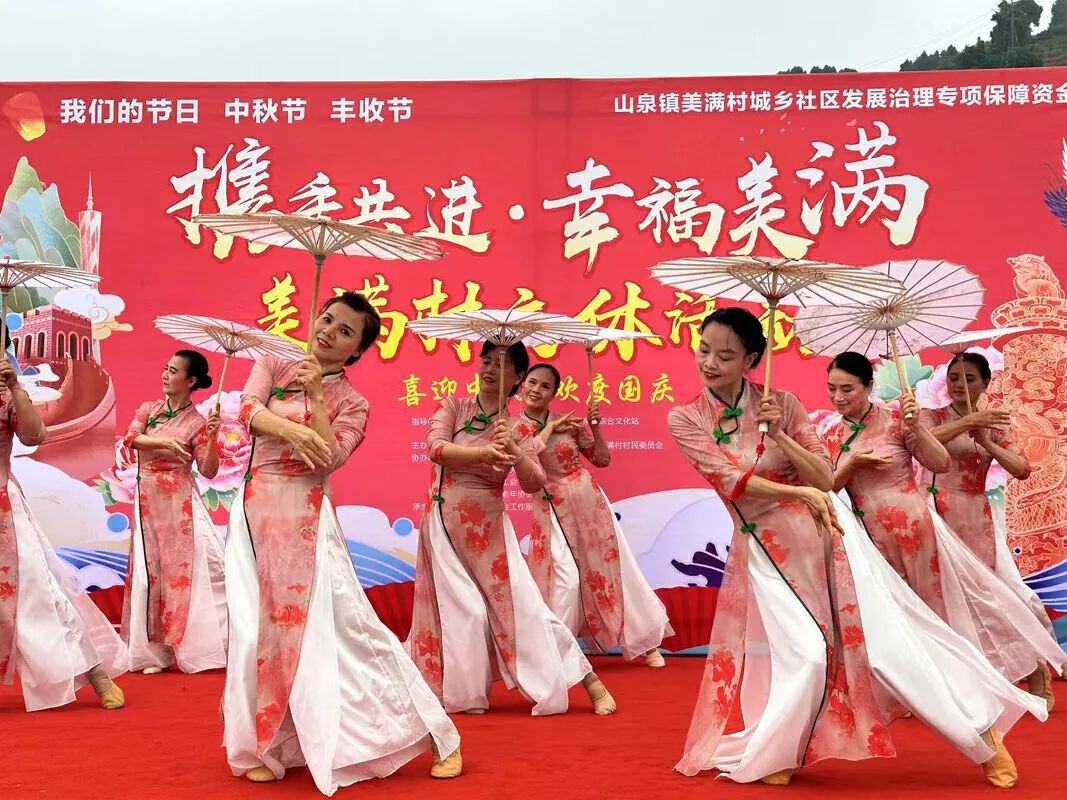 9月27日,山泉镇美满村举办“携手共进·幸福美满”文体活动,邀请广大村民载歌载舞庆祝中秋国庆节的到来,在欢声笑语中共话一年丰收季、共享一年美满时。