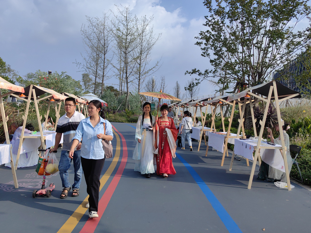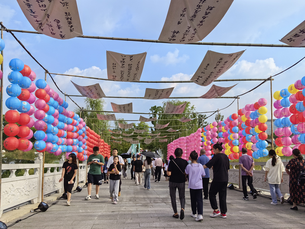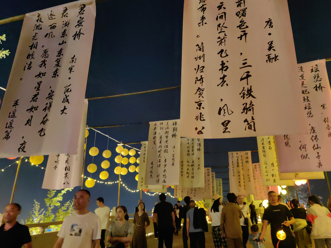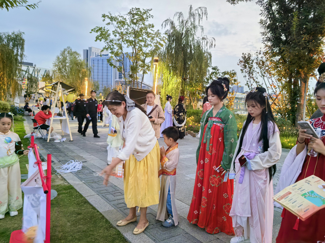 记者看到,在东安堤不仅能享受诗词的美妙,还能近距离观看、研习四川非物质文化遗产技艺,换上汉服体验盛唐中秋游园风俗,驻足聆听中国古典乐器带来的荡涤心灵,参与诗词接龙、猜灯谜等趣味活动。