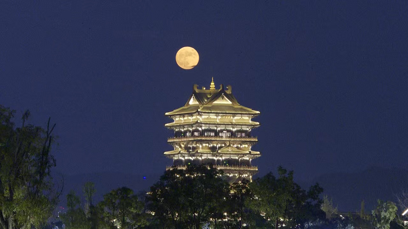 站上东安阁望月,你抬头,你望它,它也望你,清辉普照,如影随形。来自锦江区的蒋晓丽和家人登上东安阁,借着一轮明月许下美好愿景,共庆中秋佳节。“这还是我第一次来东安阁,这个建筑很美,修得很漂亮,今晚跟家人一起到这里来赏月,感受一次别样的中秋,感觉很棒。”蒋晓丽高兴地说,以后有机会还会和家人再来。
