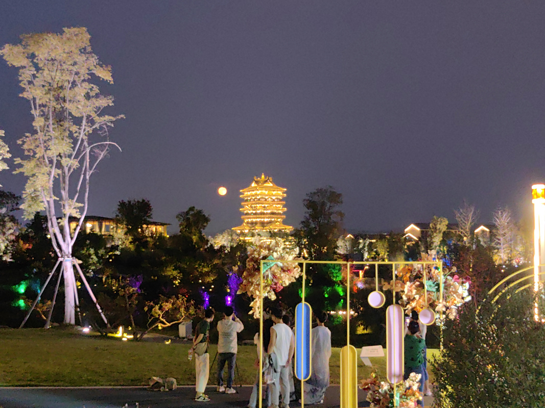 中秋佳节花好月圆,今晚的东安湖畔,你在火炬塔广场感受到浓厚的节庆氛围了吗?