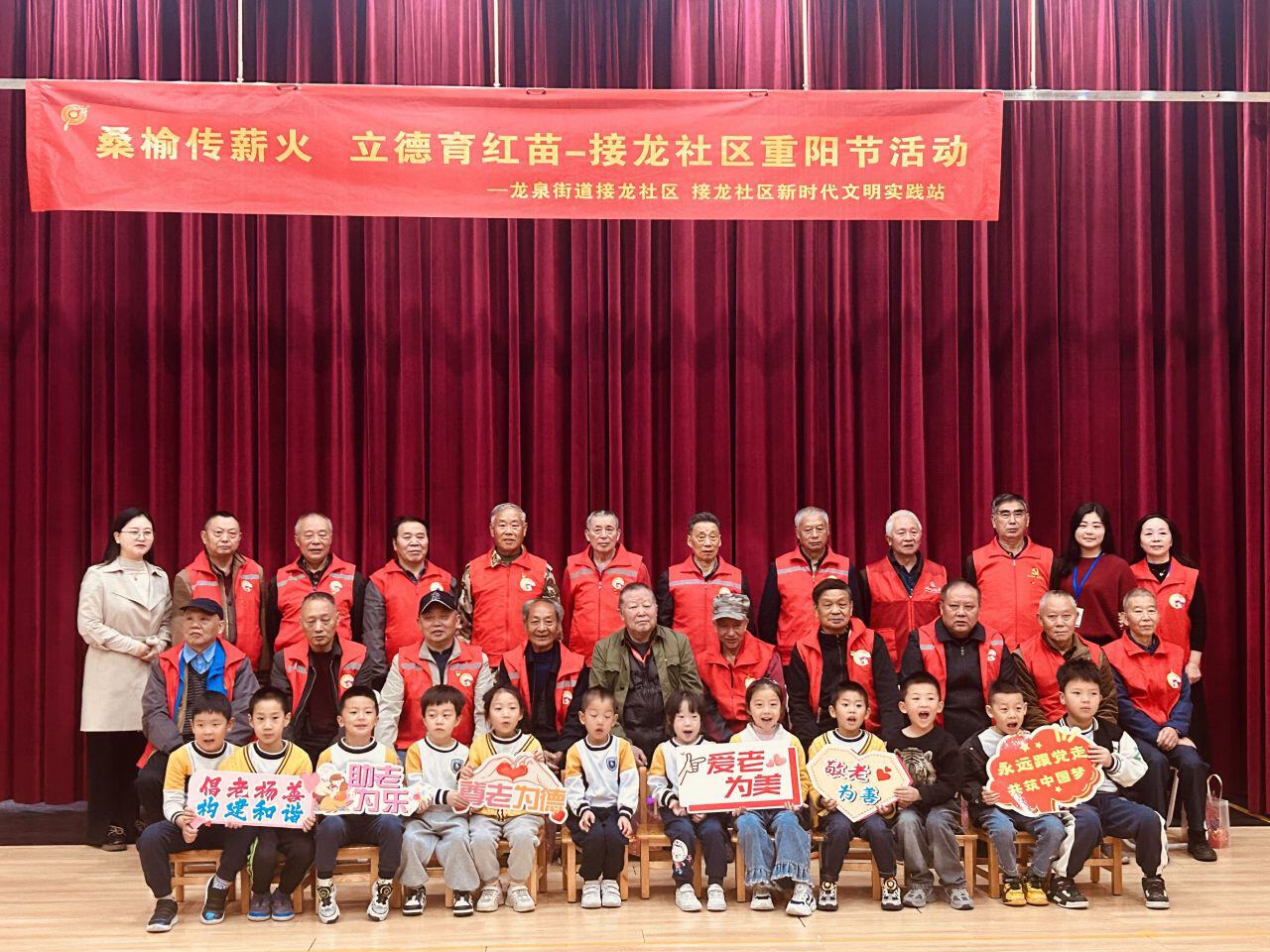 金秋十月爽,九九话重阳。为大力弘扬中华民族尊老敬老爱老的传统美德,传承红色基因,10月20日,龙泉街道接龙社区在斯坦丁幼儿园开展了“桑榆传薪火,立德育新苗”重阳节活动。