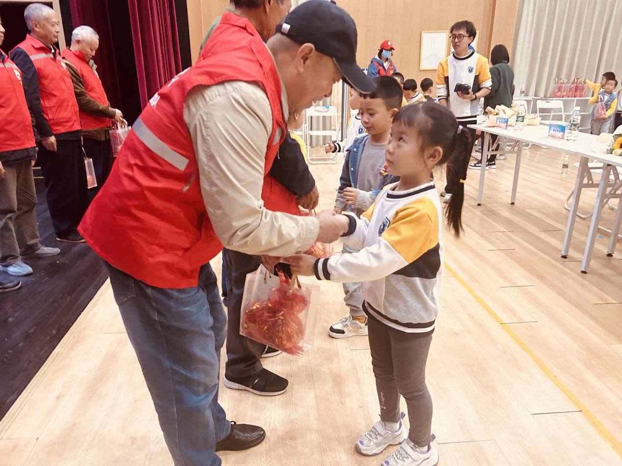 听完爷爷们的故事,幼儿园的孩子们为在场的退役老兵们送上了平安礼包,祝福每一位老兵爷爷身体健康。