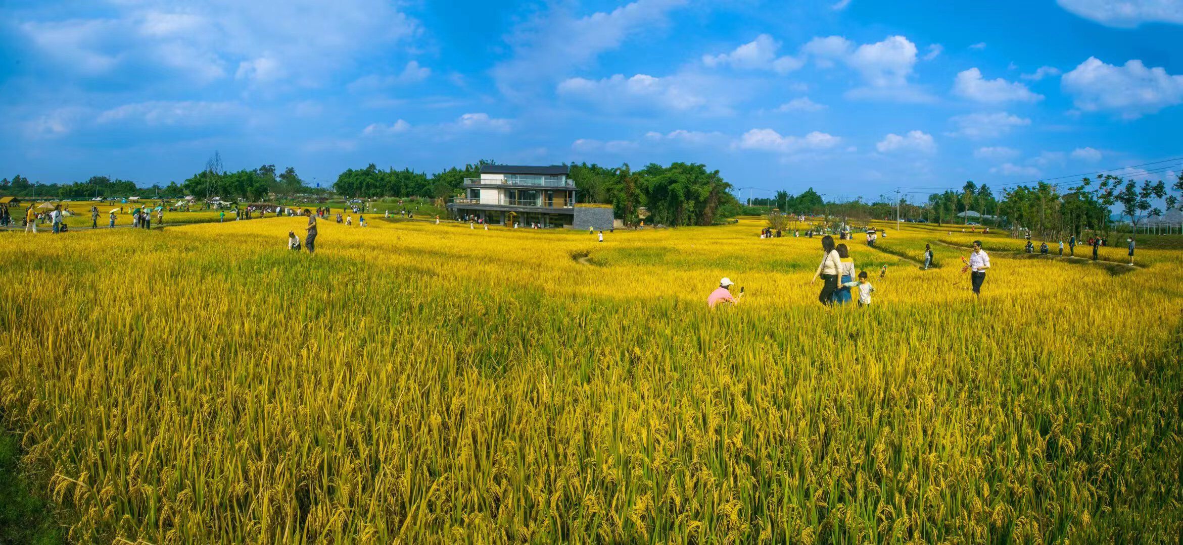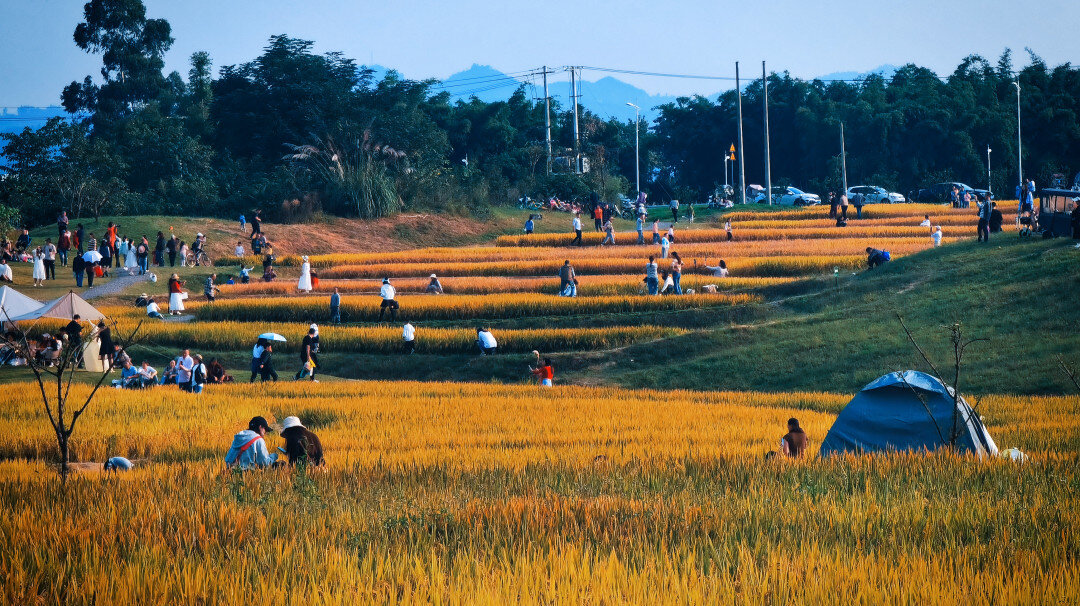 “周末我专程带着孩子来体验水稻收割,我想让孩子感受粮食的来之不易。”游客何女士表示,这里好看又好玩,还有农事活动可以体验,是个寓教于乐、融学于趣的好地方。