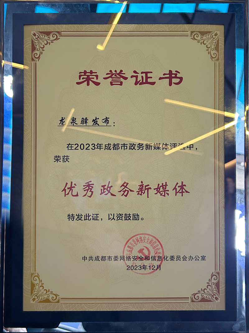 12月14日,2023成都市政务新媒体峰会举行,现场发布了“2023年优秀政务新媒体”“2023年优秀新媒体”等榜单。“龙泉驿发布”获得成都市“2023年优秀政务新媒体”称号。