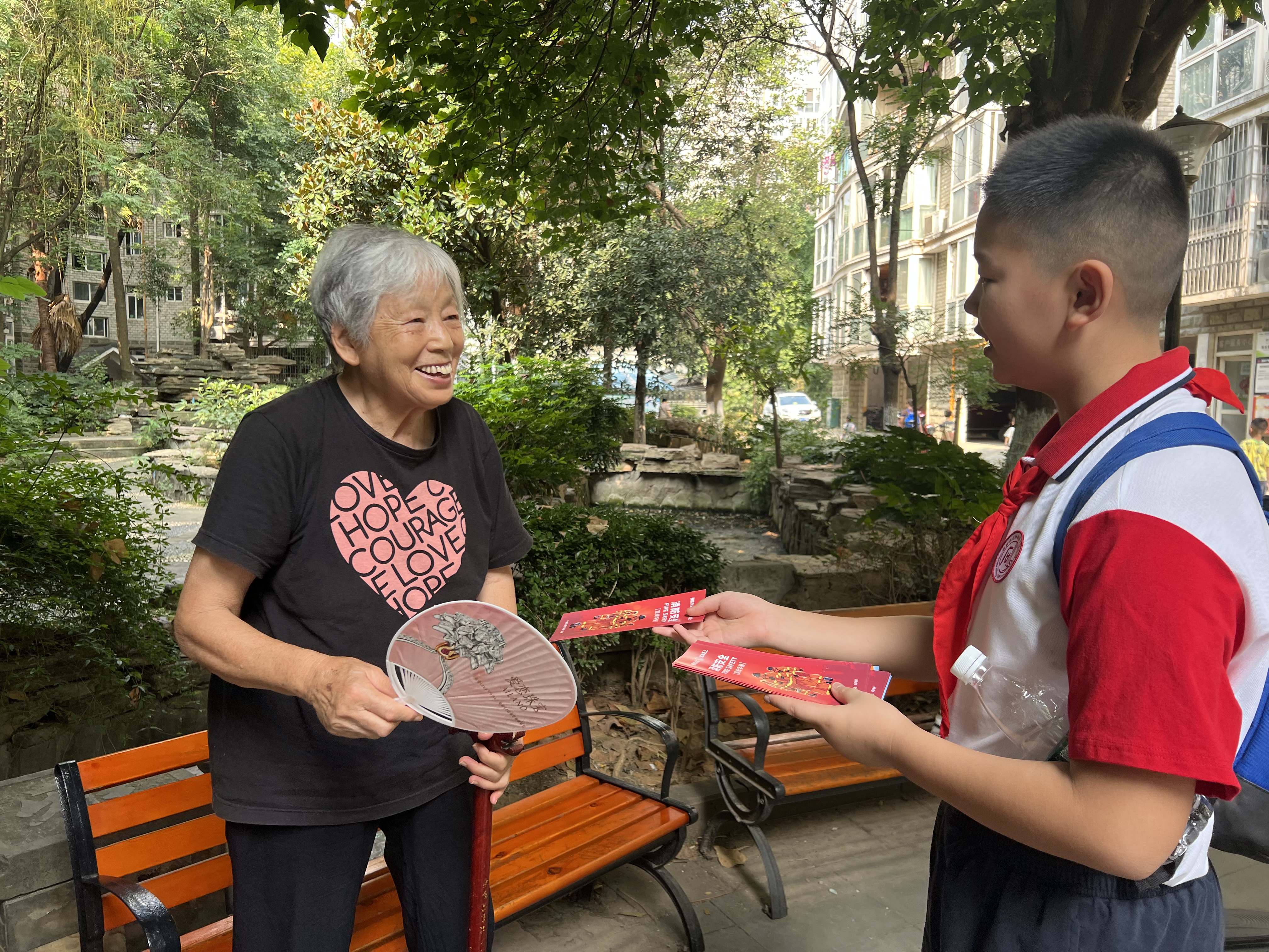 “阿姨,这是消防安全宣传手册,您拿回家看看吧!”“叔叔,电动自行车要停放在指定位置,不能停在楼道里。”“婆婆,您的腰不舒服,让我们来帮忙打扫卫生吧!”……8月21日上午,在十陵街道石灵社区,两名“红领巾网格员”又开始工作啦,他们佩戴着鲜艳的红领巾,在社区网格员的带领下,参与文明劝导、关怀特殊群体等志愿服务工作。