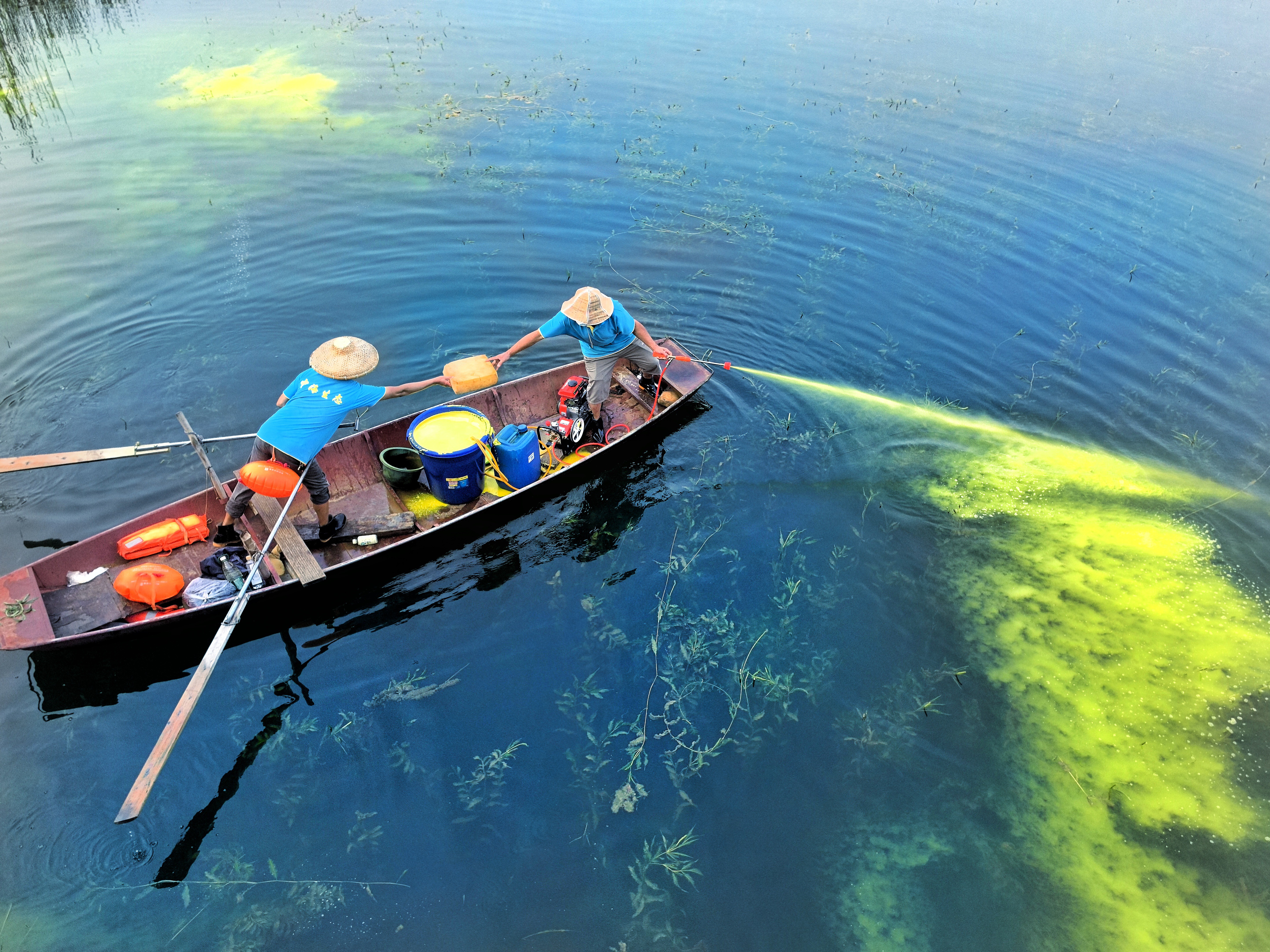 《烈日舟上行 为净一湖水》摄影:李晓宁