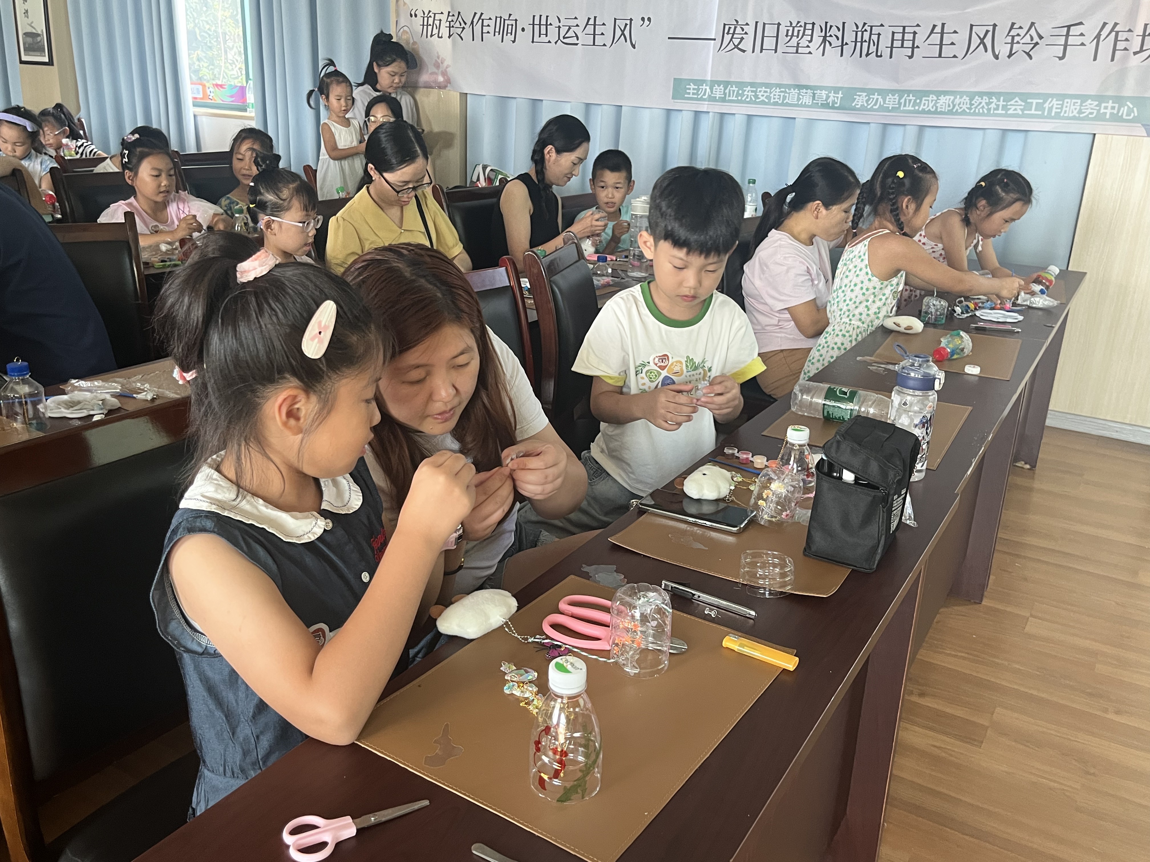2025年7月11日,东安街道蒲草村开展的“小手拉大手・共筑新生馆”社区环保行动日暨旧物新生体验馆预热活动与“瓶铃作响・世运生风”废旧塑料瓶再生风铃手作体验,以“实践+文化”的双轮驱动模式,为东安街道社区治理注入鲜活动能,展现了“小活动撬动大治理”的生动实践。