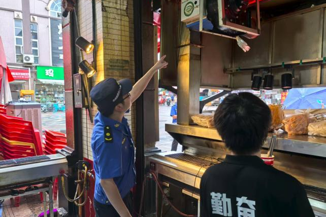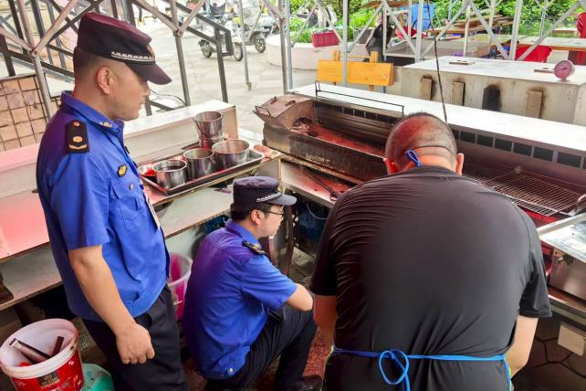 经查,多数商户均已按要求安装油烟净化设备并规范使用,但仍有少数商户存在设备清洗不及时、清洗记录不完整等问题。针对上述情况,执法人员当场责令相关商户整改,明确要求其建立规范的清洗维护台账,保障设备长期稳定有效运行;其中一户商家被要求更换油烟净化设备,经后续复查,该商户已完成设备更换工作。