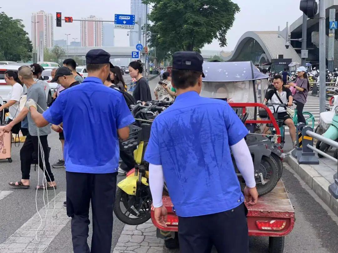 这惊人的转变背后,是队员们日均3万步的奔走和600余辆车的重新归位。他们想出了60米护栏加4处标识的巧思,通过物理隔离与现场引导双管齐下,既解决了“停车难”,又破解了“找车难”的问题。队员罗光文的温度计记录下三轮车货箱表面温度达 58℃,搬运时手套都能拧出汗水,一天下来,制服被汗水浸透又晒干,留下一层层盐渍。