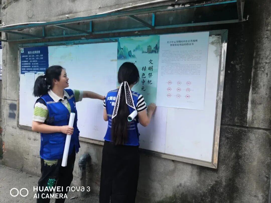 △陵川社区在辖区内广泛张贴文明祭祀海报,组织社区工作人员、网格员为居民讲解文明祭祀的方式与意义,安排社区工作人员、网格员与城管人员进行值班,防范火情发生。