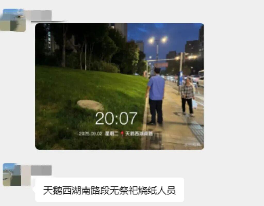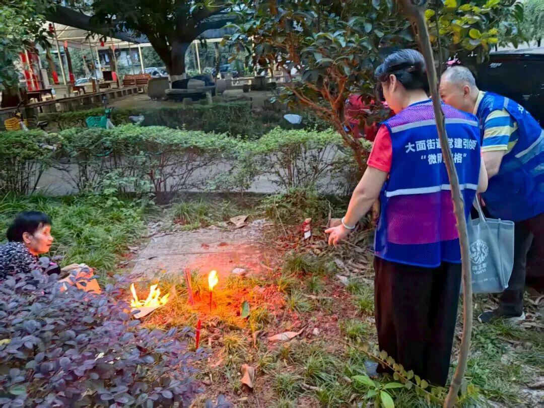 △师大社区组织了一支由工作人员、网格员等10余人的巡查小队。巡查采用“定时+定点”的模式,每晚19点至23点,队员们一旦发现不文明祭祀行为,立即上前耐心劝阻,以实际行动守护社区的整洁与安宁。