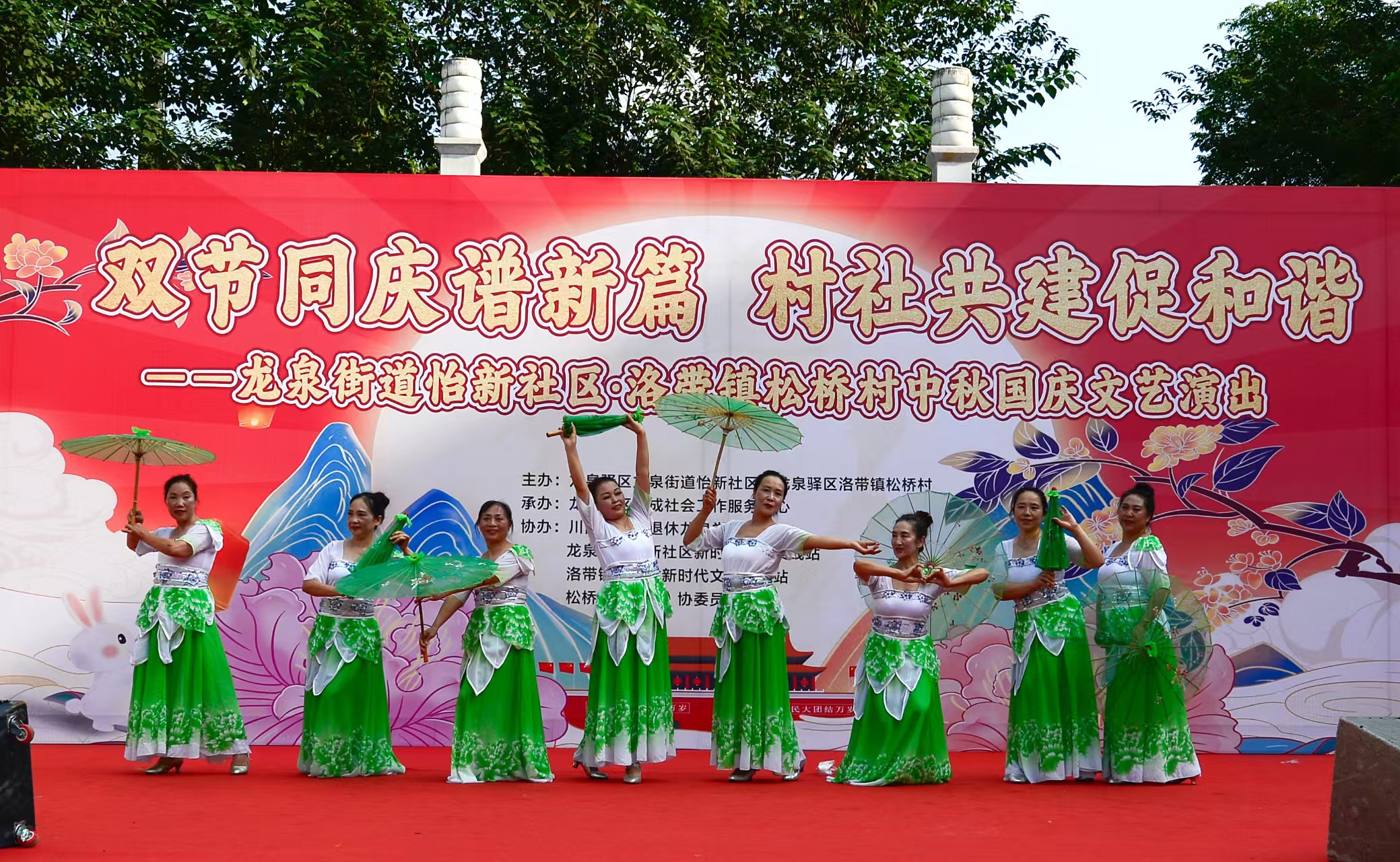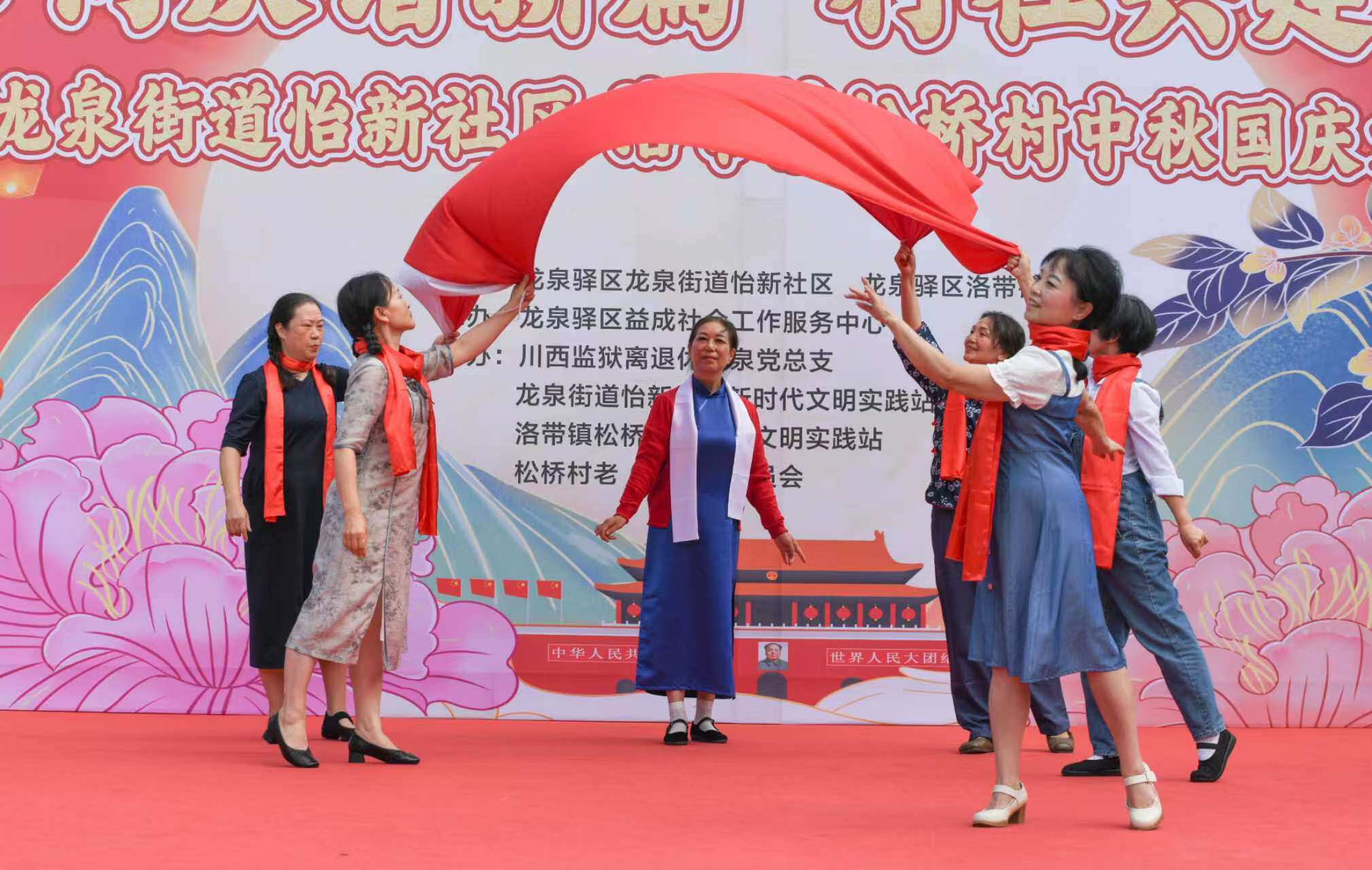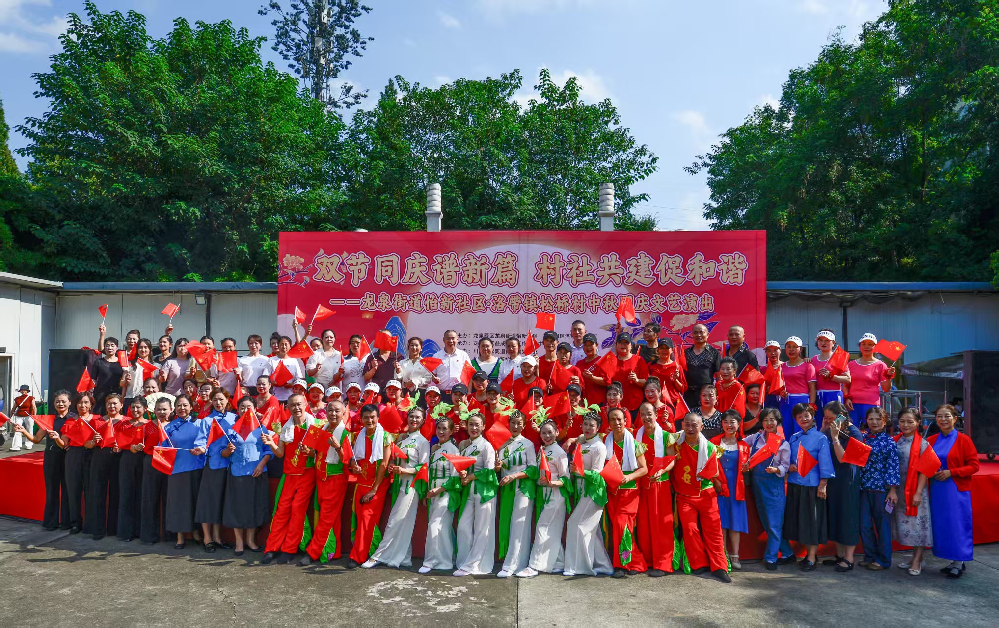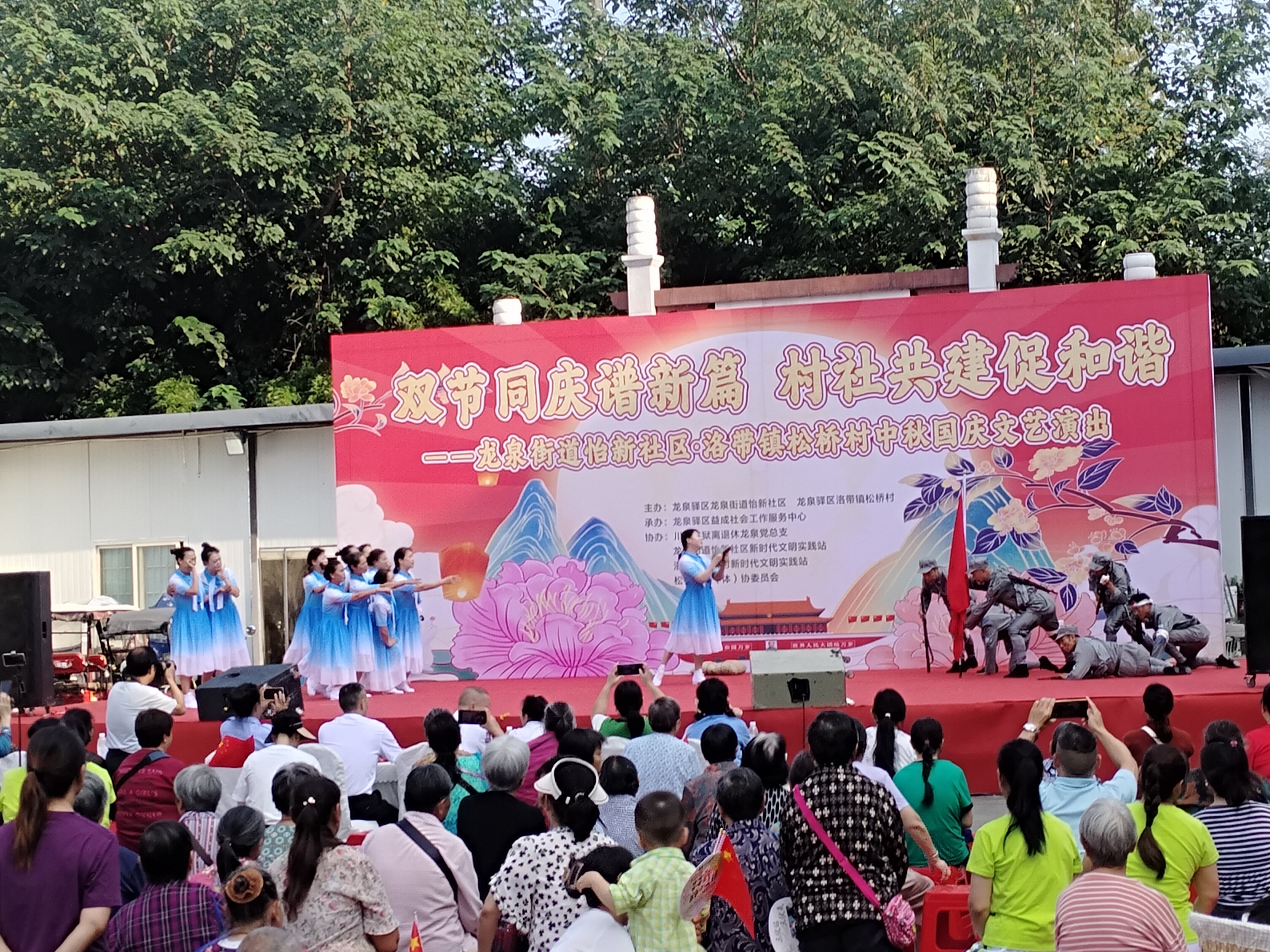 金秋送爽,丹桂飘香。中秋、国庆双节将至,龙泉街道怡新广场早早就挂起了小国旗,洋溢着喜庆的氛围。9月25日下午,龙泉街道怡新社区和洛带镇松桥村手拉手,共同举办“双节同庆谱新篇·村社共建促和谐”文艺演出,给城乡居民端上了一场满是烟火气的视听盛宴。