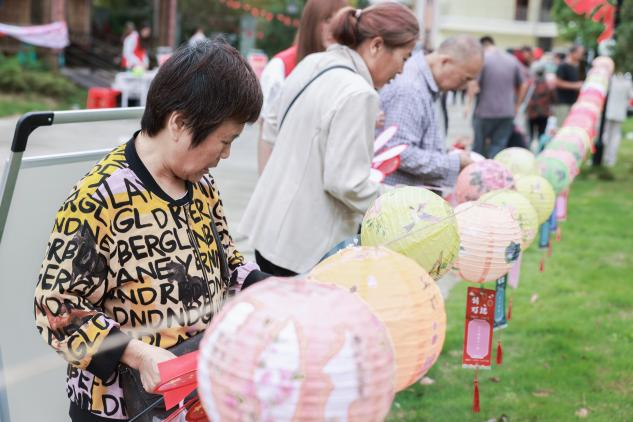 游园打卡区化身“治理宣传角”:“灯谜话治理”助村民懂网格员职责,“套圈学政策”让环境治理知识入脑;“月饼DIY”专区,村民分工制作并贴“网格互助”贴纸,现场欢声笑语不断,温暖四溢。