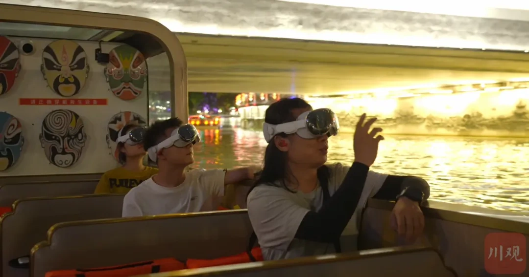 “夜游锦江”游船项目,游客正在体验MR数字游船 摄影/C视觉 吴聃