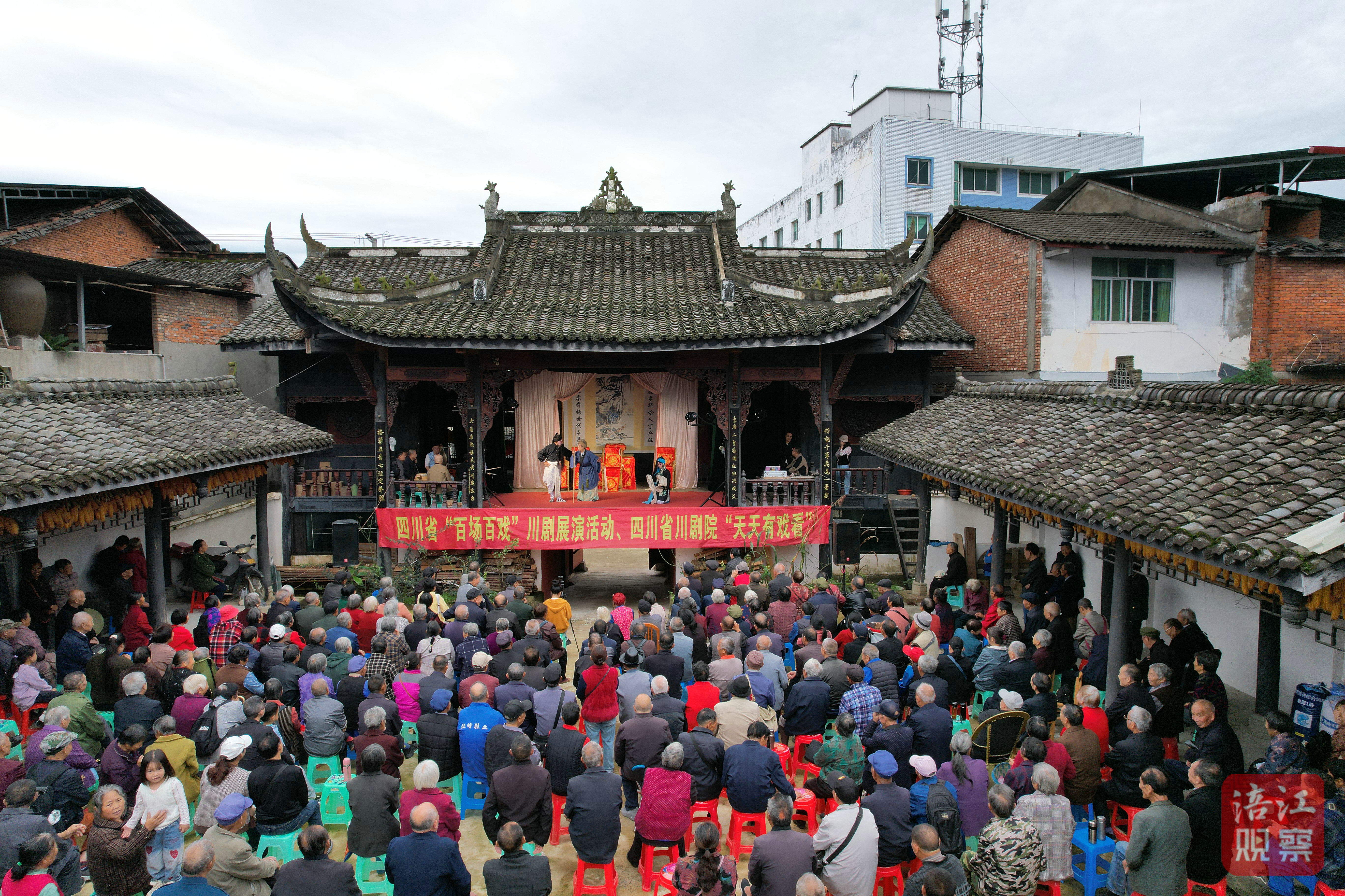 10月12日,绵阳江油重华古镇湖广会馆禹王宫锣鼓铿锵,四川省“百场百戏”川剧展演活动在此开演,古戏台上是生旦净末丑,台下是戏迷满座,川西北这个“戏窝子”再次沸腾了。
