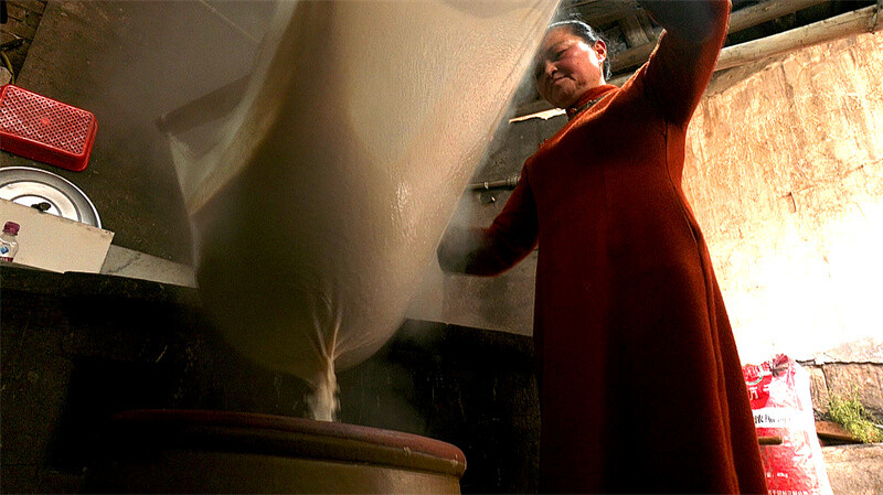 凌晨两点的罗泉镇,多数人家还在沉睡,曹素芳和丈夫已准时起身,开启一天的豆腐制作。转动石磨、过箩筛浆,再将豆浆倒入自带冷热水循环系统的砖土火灶,用柴火慢煮 ——这套现代工业化生产难以复制的“秘方”,是她30多年制作生涯里从未改变的坚持。