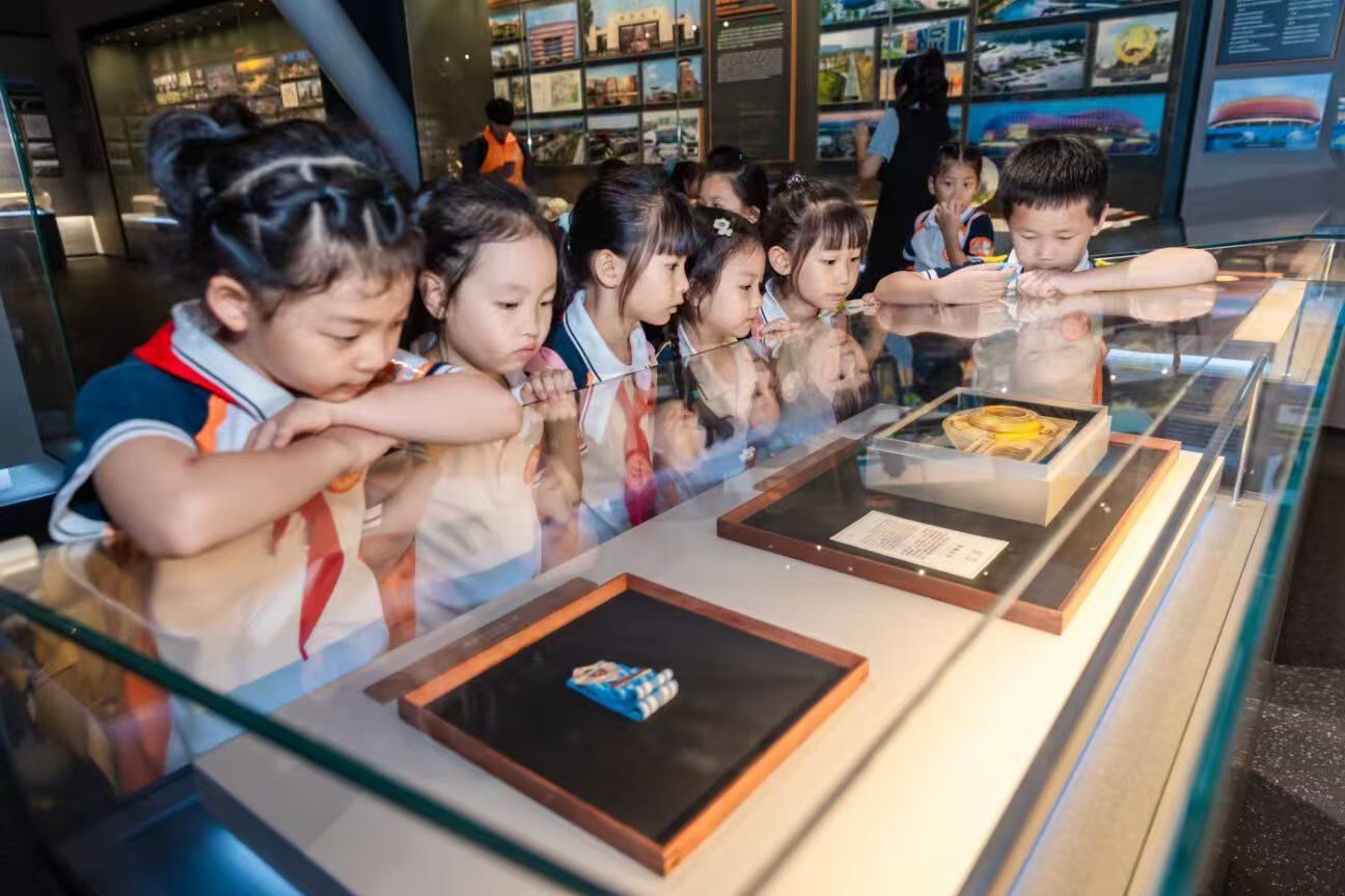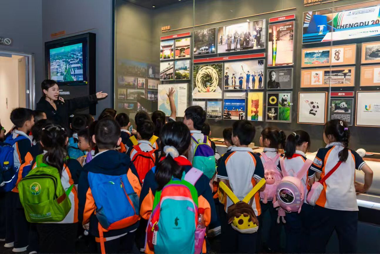 专业讲解员通过生动地叙述,带领孩子们重回成都大运会举办时那个激情盛夏。奖牌背后的拼搏故事与“成都成就梦想”的城市精神,深深触动着每一位少年。