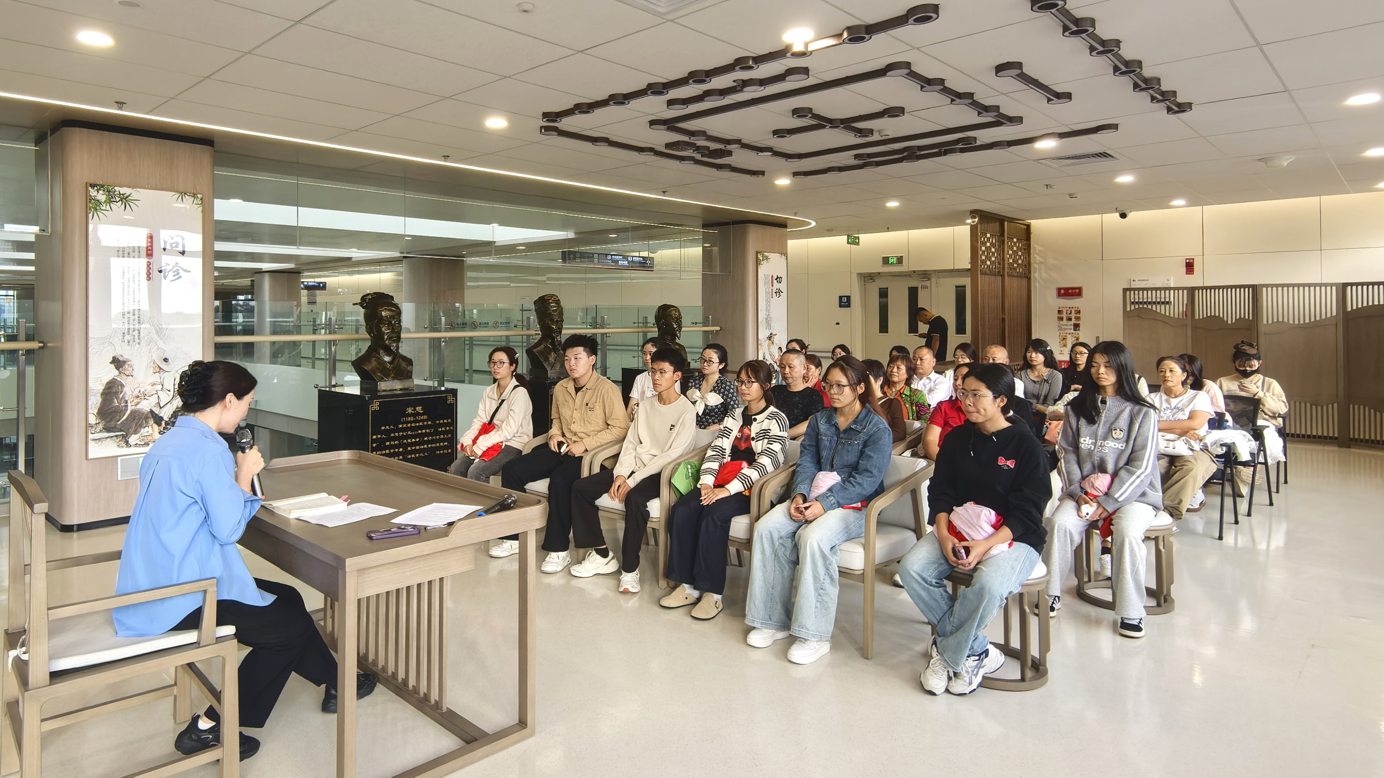 “你觉得人生最重要的事是什么?”10月17日下午,在龙泉驿区中医医院开展的2025年龙泉驿区 “驿”起读 “阅”幸福 全民阅读系列活动现场,龙泉驿区中医医院群工部主任、高级职业培训师、正念训练师、健康管理师王维,以这样一个直击人心的问题开启了当天的阅读分享,现场汇聚了不少关注阅读与健康的市民,大家的注意力瞬间被聚焦,一场兼具文化滋养与心灵疗愈的阅读分享会就此拉开帷幕。