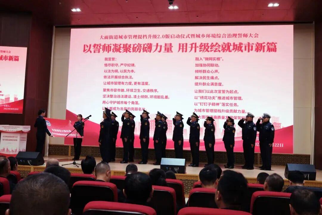 10月22日,大面街道城市管理提档升级2.0版启动仪式暨城乡环境综合治理誓师大会召开,全面动员街道上下以更高标准、更实举措,奋力推动城市管理工作再上新台阶。大面街道党工委书记张金珍出席会议并讲话。