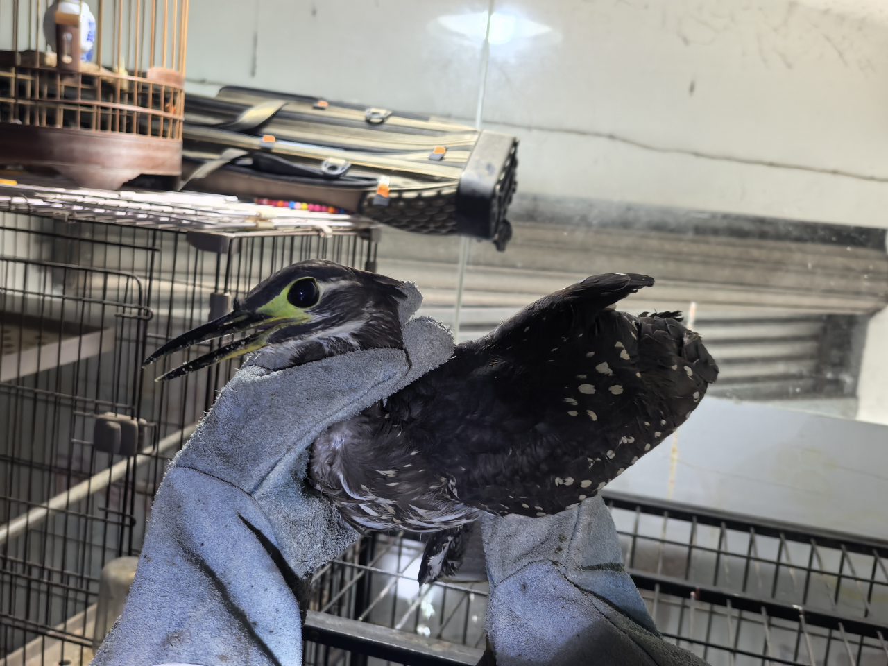 经比对资料确认,这只鸟为国家一级保护动物海南鳽(jian)。工作人员随即将其带回救助点进行详细检查,发现其右翅根有一处陈旧性伤痕,导致无法飞行。救助点工作人员吕长顺特意购买泥鳅进行投喂,在精心照料下,该鸟体力逐渐恢复,精神状态良好。