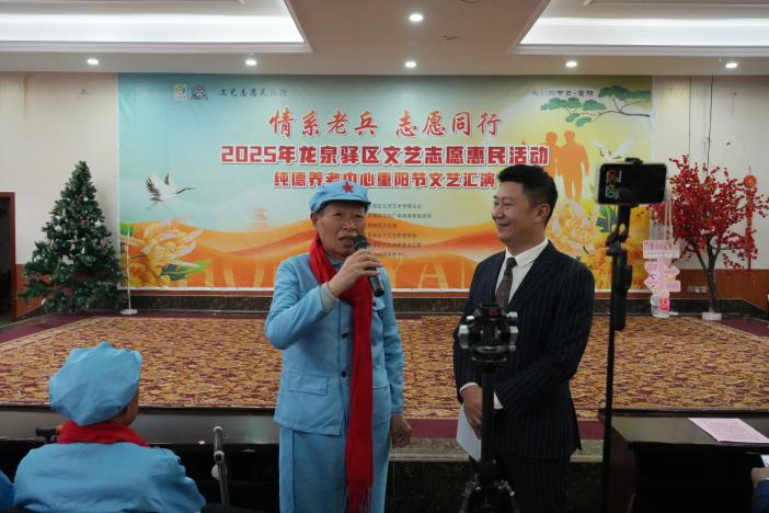 重阳佳节,敬老情浓。2025年10月28日,在成都市龙泉驿区纯德养老中心,一场以“情系老兵 志愿同行”为主题的重阳节文艺汇演温情上演。本次活动由龙泉驿区文化馆主办,区文艺志愿者协会、区文化志愿者办公室承办,多家单位共同协办,以文艺志愿服务为载体,为老人们送去节日的问候与社会的关怀。