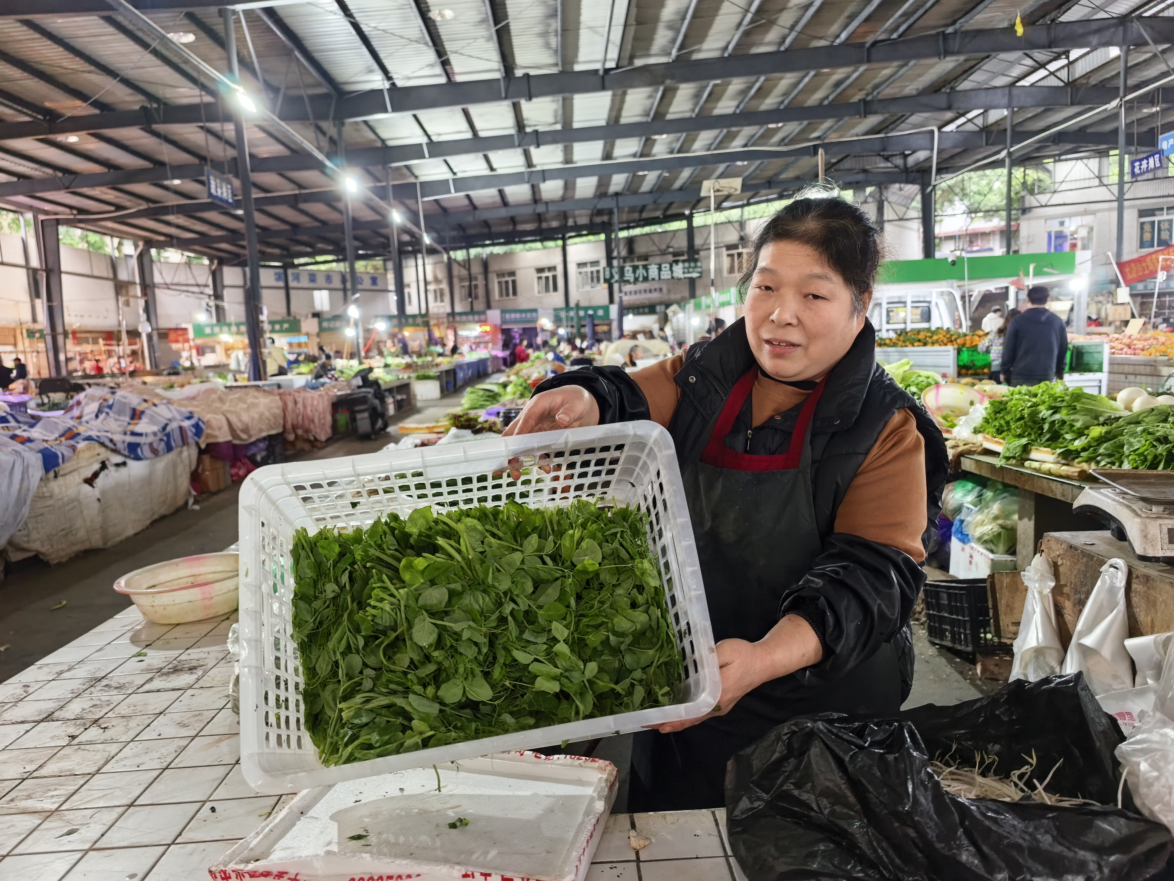 随着秋冬季节的转换,本地时令蔬菜开始大量上市。近日,记者走访龙泉驿区多家农贸市场与商超发现,龙泉驿区本地豌豆尖进入大量上市期,鲜嫩的豌豆尖不仅成了菜市场和超市的“宠儿”,价格也迎来大幅回落,相较一个月前的价格直接“腰斩”,让喜爱这口鲜的市民实现了“豌豆尖自由”。