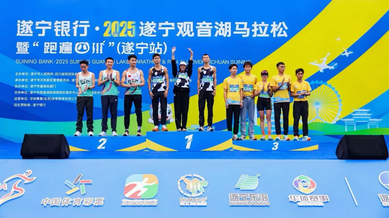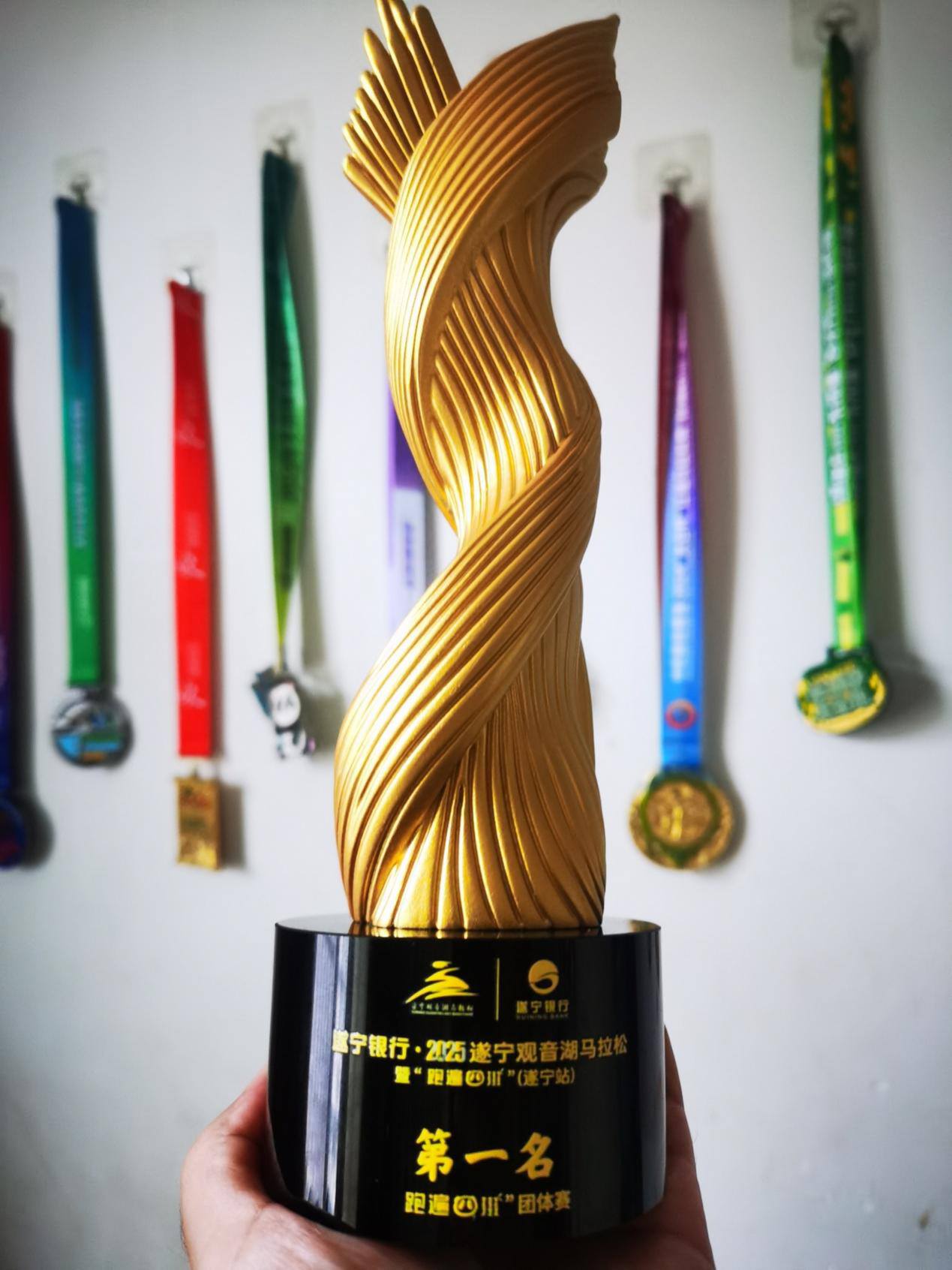 此外,跑团积极参与“江油马拉松”“西昌马拉松”等赛事,累计获得团体奖项6次、个人奖项23项。2024年4月,跑团在东安湖半程马拉松中获团体赛第二名,此次遂宁夺冠更实现了从区域赛事到国家级A1类赛事的跨越。