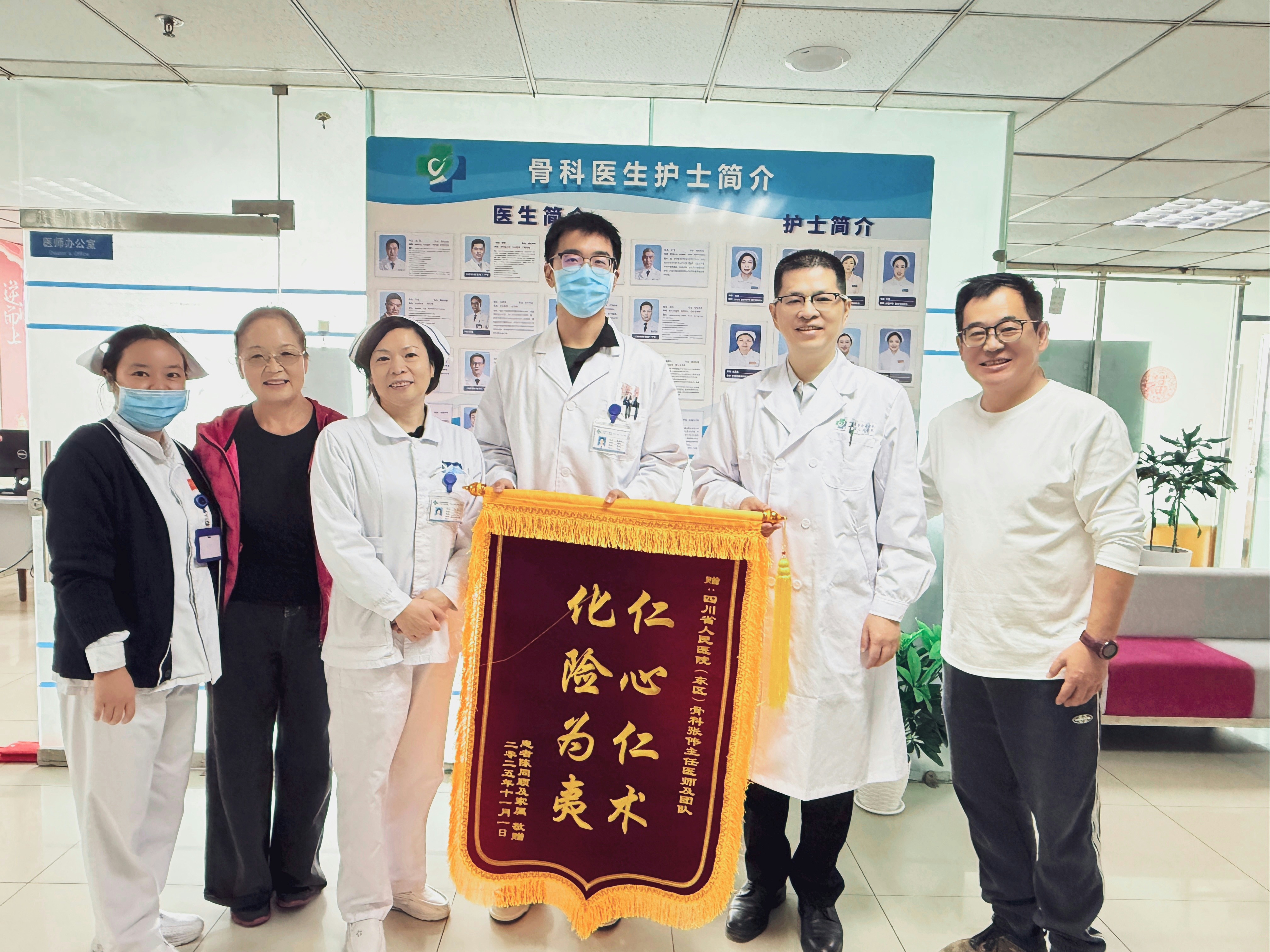 近日,患者家属特意送来锦旗,红色的绒布上,金色的文字诉说着不尽感激。而对医者而言,老人重新站起的那个瞬间,就是最好的回报。