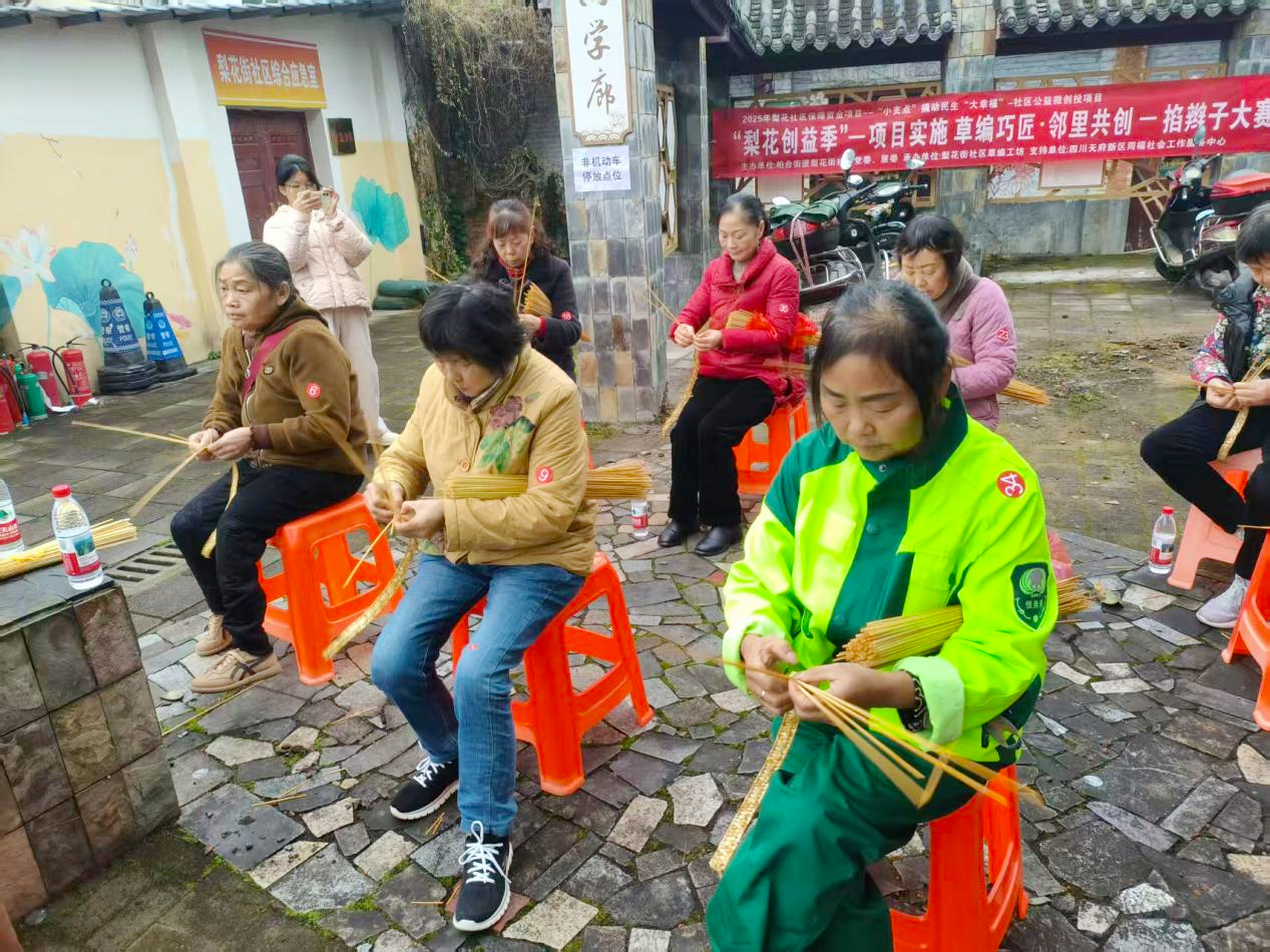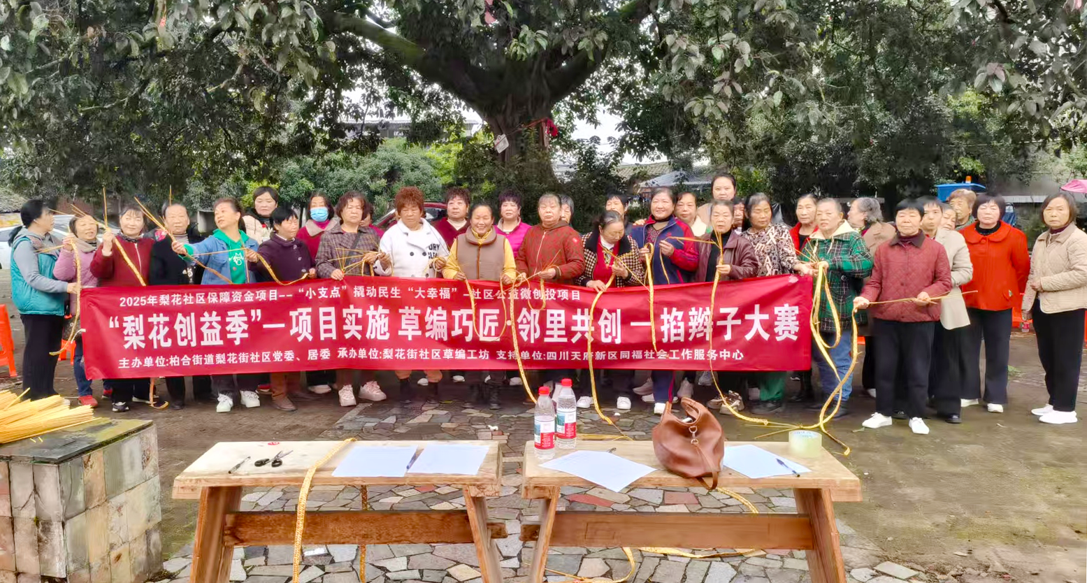 2025年11月14日上午,柏合街道梨花街社区党群服务中心热闹非凡,“草编巧匠・邻里共创” 掐辫子大赛在此成功举办。活动由社区党委、居委会主办,社区草编工坊承办,四川天府新区同福社会工作服务中心支持,数十位社区草编爱好者参与。