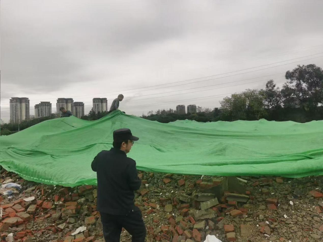 为从源头阻断建渣污染与安全隐患,三方协同推进多重管控举措:一是对拆迁片区实施全区域标准化打围,搭建整齐规范的围挡设施,清晰划定作业区域与通行区域,实现拆迁现场与周边居民区、交通道路的有效隔离,杜绝建渣散落与无关人员随意出入;二是对暂未清运的建筑垃圾渣土进行全面覆盖,采用防尘网严密遮盖,从源头遏制扬尘扩散,切实减少对周边空气质量的影响;三是聚焦外来建渣倾倒乱象,十陵街道综合执法办开启日夜监管模式,组建专业巡查专班,实行24小时轮班值守,通过定点值守与动态巡逻相结合的方式,全方位紧盯片区出入口及重点路段,严厉打击非法倾倒建渣行为,筑牢建渣管控“防火墙”。