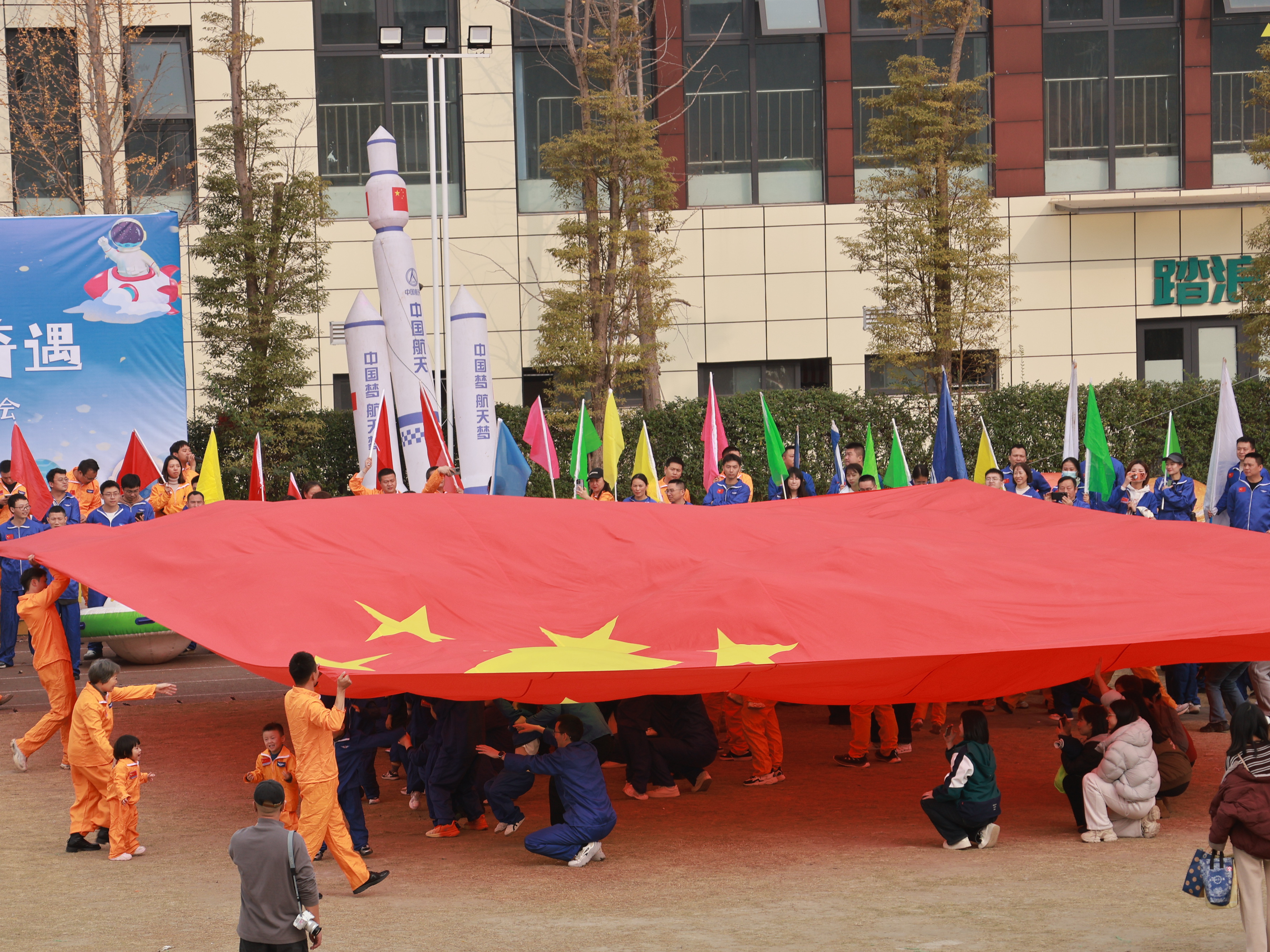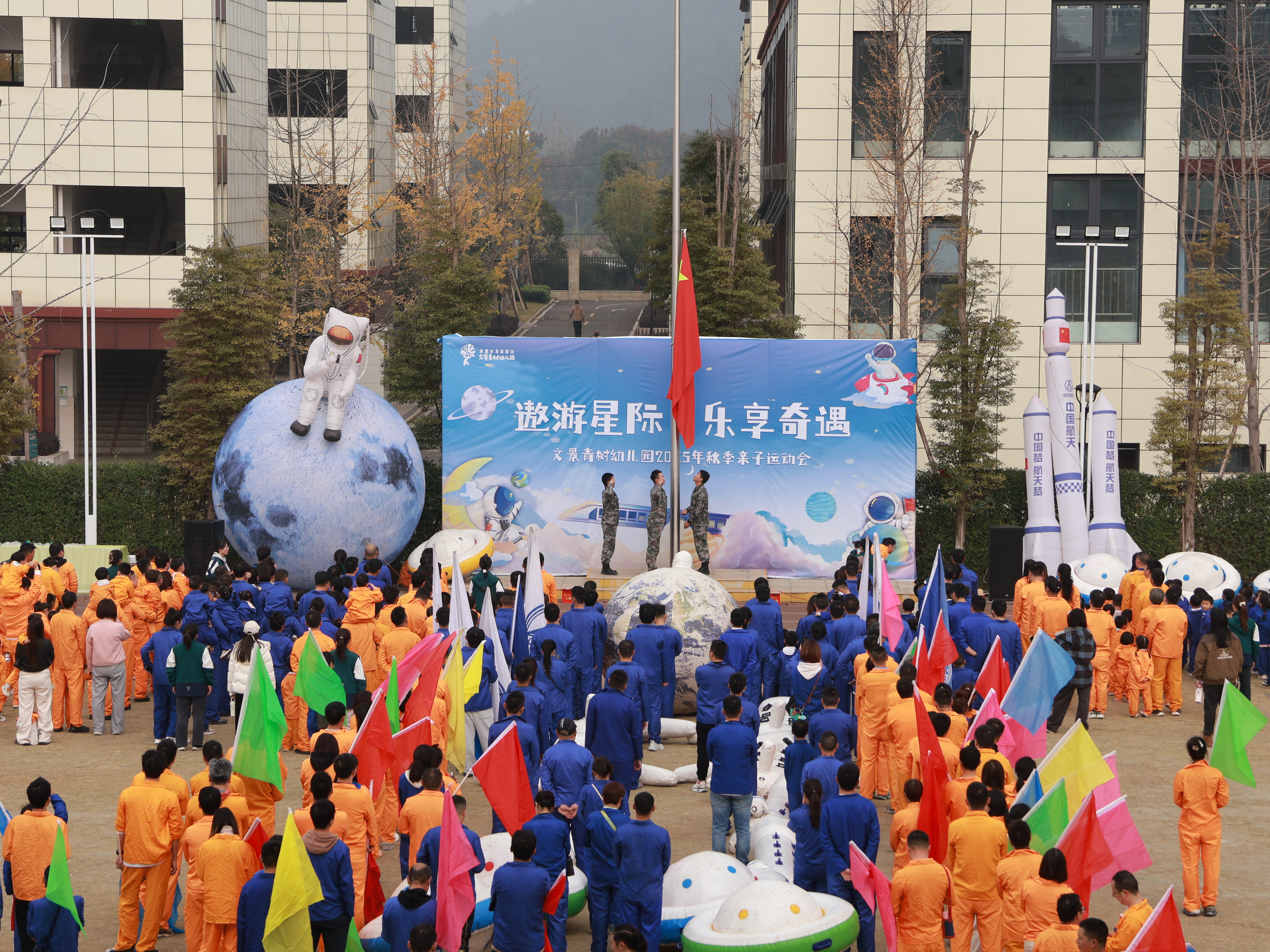 11月29日下午,文景青树幼儿园以“遨游星际·乐享奇遇”为主题的2025年秋季亲子运动会,在龙泉驿区实验小学百工堰校区欢乐启幕。全园幼儿与家长、教师共赴这场“星际之约”,在趣味运动中解锁亲子温情,感受航天魅力。