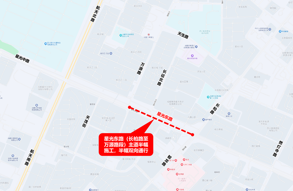 为配合龙泉驿区排水管网整治三年攻坚行动,自2025年11月29日起,星光东路(长柏路至万源路段)将进行为期三个月的施工。施工期间,该路段交通组织将作出相应调整,请广大市民提前规划出行。
