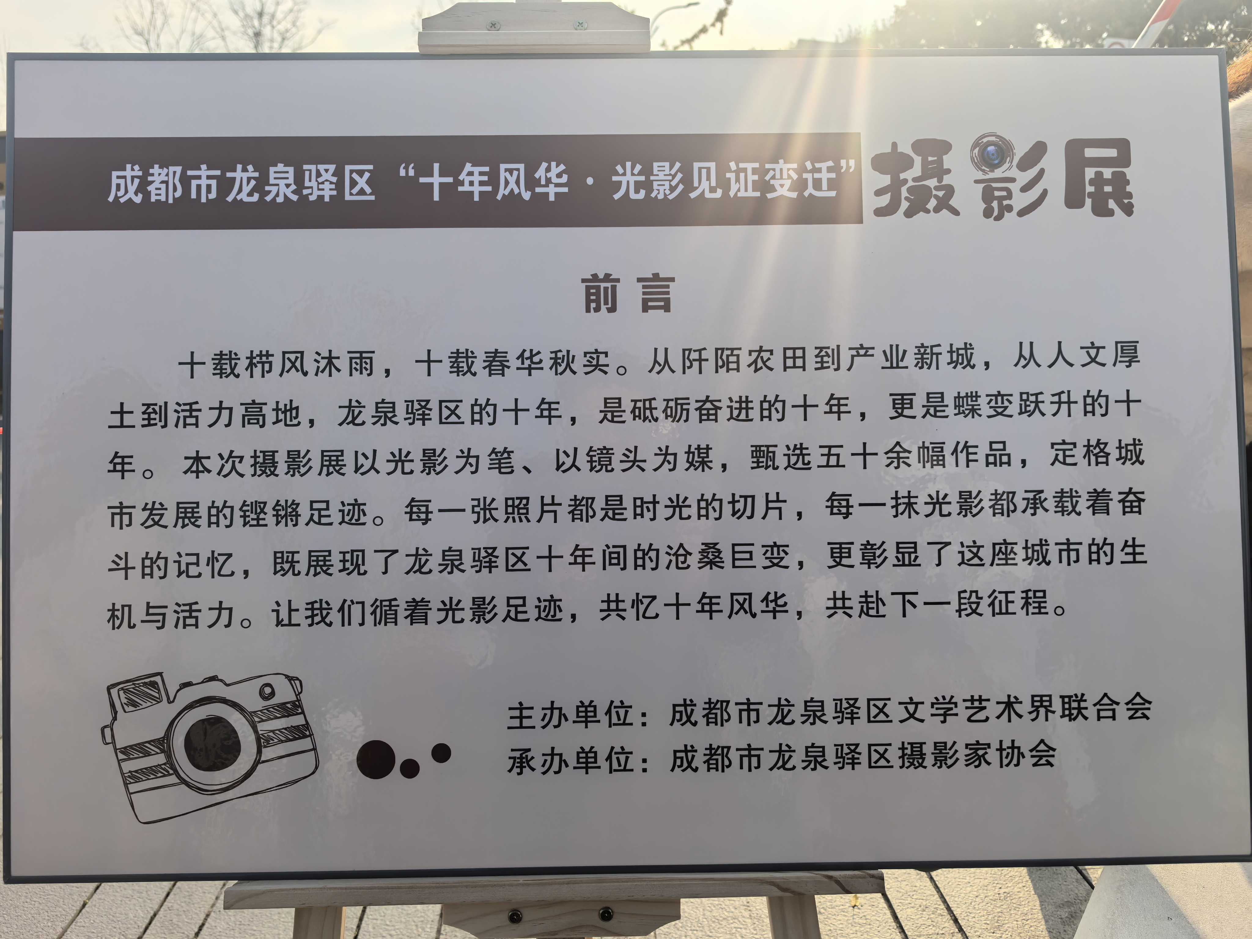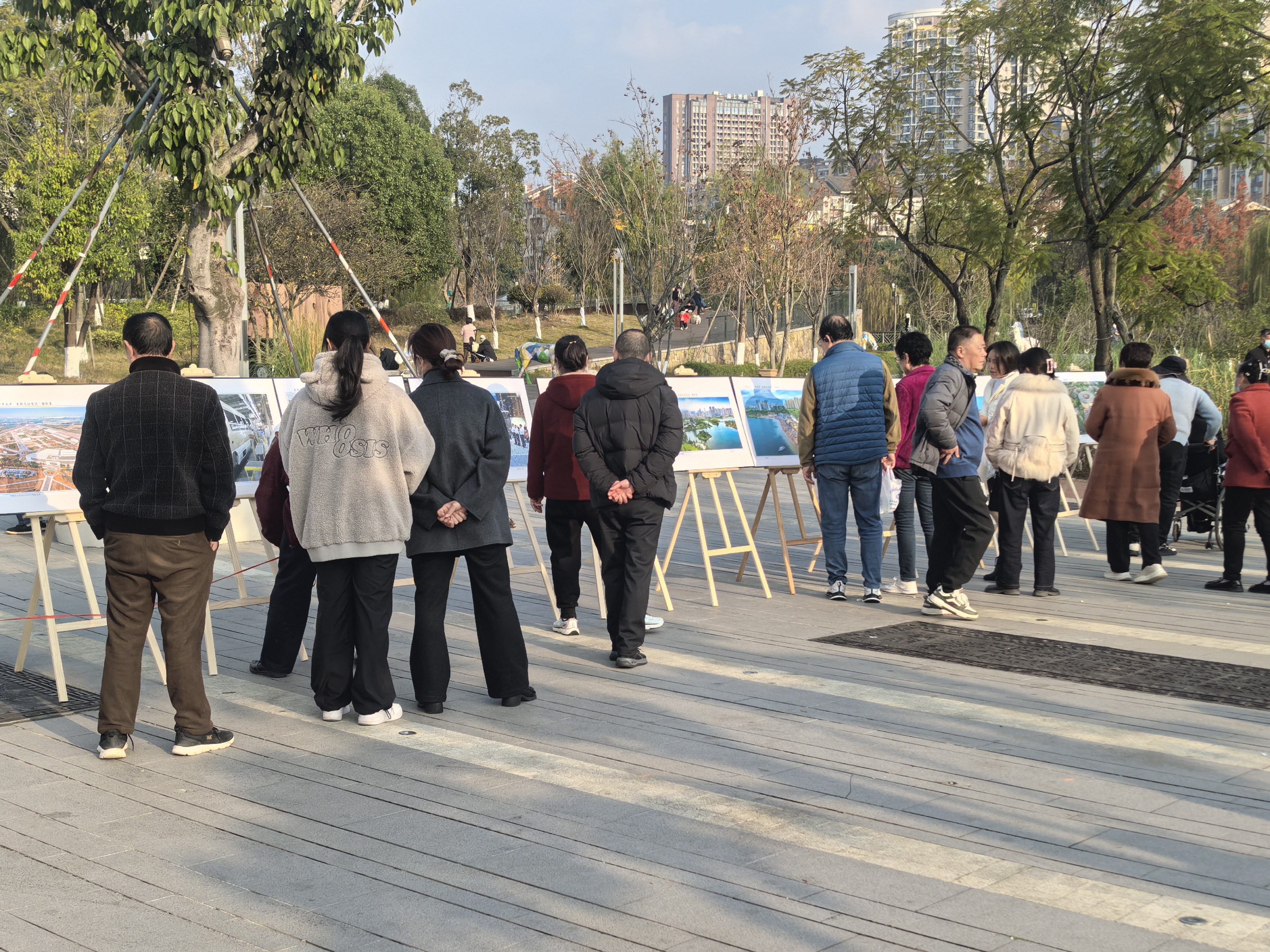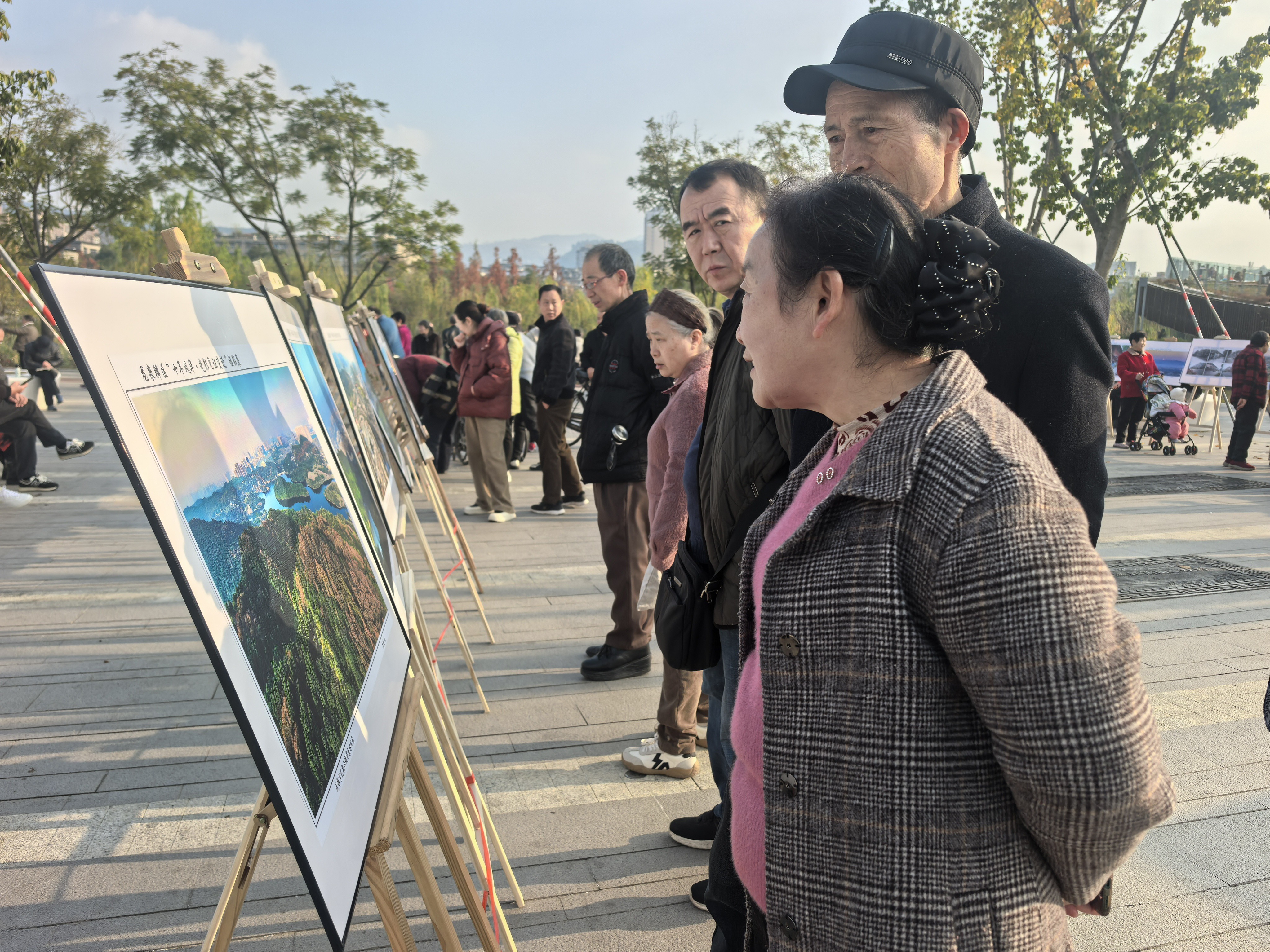 12月5日,龙泉驿迎来一场冬日暖阳,照在人身上舒服又温暖。“十年风华·光影见证变迁”摄影展在龙泉街道驿马河公园一期开展。没有复杂的开幕式,五十余幅作品直接摆在公园里,有老街道、旧厂房,也有新修的马路、公园和小区,吸引不少市民观看,大家来“找回忆”“看变化”。