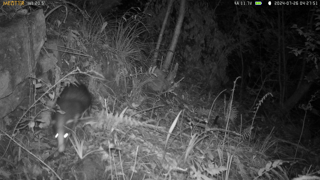 红外相机在龙泉山捕捉到的猪獾活动影像