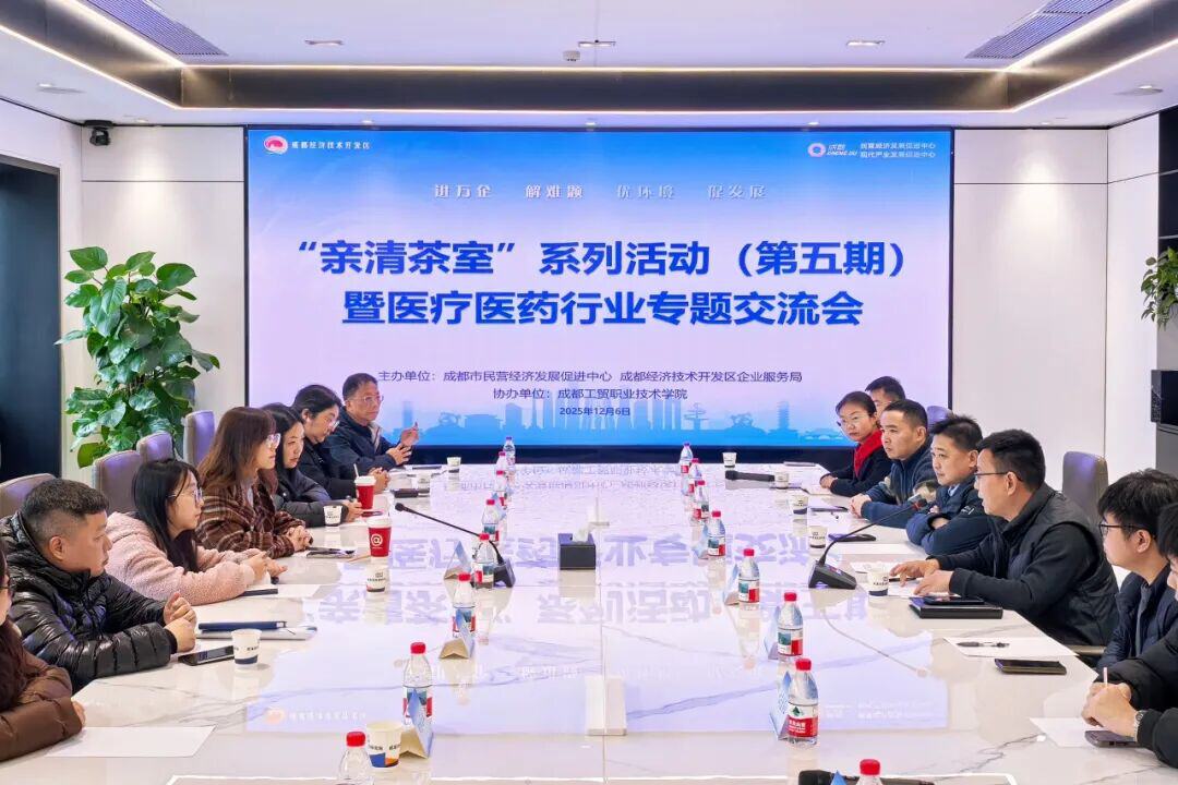 一杯清茶话发展,政企同心解难题。12月6日下午,由成都市民营经济发展促进中心、成都经开区企业服务局共同主办的“亲清茶室”系列活动第五期——医疗医药行业专题交流会在成都市民营经济发展促进中心成功举行。
